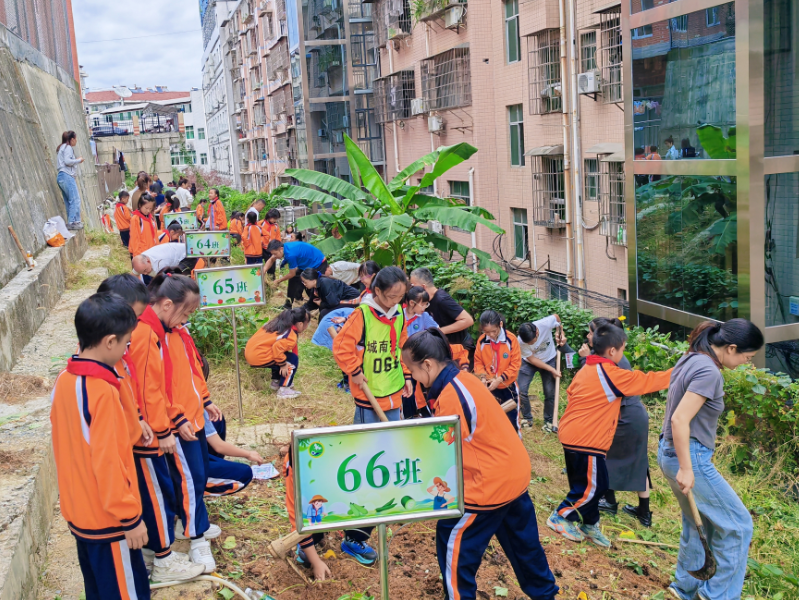 本网讯 9月24日,东坪镇城南完小举行2025年秋季劳动实践教育基地启动仪式,以沉浸式场景推动劳动教育走向实践。仪式由德育主任刘芬主持,学校行政领导、党员教师、四年级全体师生以及来自各班的家长代表积极参加,共同见证这一重要时刻。 仪式现场,校长张密田依次为党员教师、四年级8个班级授予“责任田”牌匾,分发锄头、种子等劳动物资。接着,学生钟君浩代表全体同学表达了对秋季劳动实践的向往与承诺。 仪式结束后,师生有序进入“责任田”开展耕种。田间地头,学生三五成群,分工协作拔草、开垦、播种,动作生疏却认真;教师与家长穿梭指导,手把手演示农具使用,讲解播种间距等知识,帮助学生在实践中掌握劳动技能,在体验中认知农耕文化,真正将“纸上知识”转化为“田间本领”。 据悉,该校坚持以“五育并举”为导向,积极探索素质教育新路径。通过打造可参与、可体验、可探究的劳动场景,不仅能帮助学生在劳作中强健体魄、提升动手能力,更能引导他们在观察作物生长过程中启迪科学思维,在团队协作耕种中涵养责任意识,在感受田园风光中提升审美素养,真正实现“以劳树德、以劳增智、以劳强体、以劳育美”的育人目标,为培养全面发展的新时代少年奠定坚实基础。 初审初校:刘 芬 复审复校:张前刚 终审终校:张密田