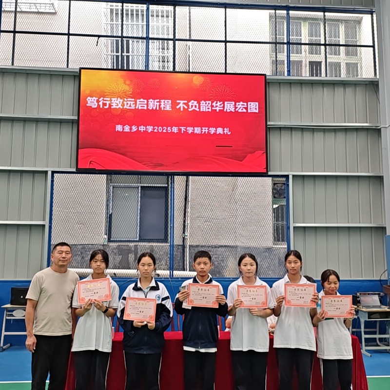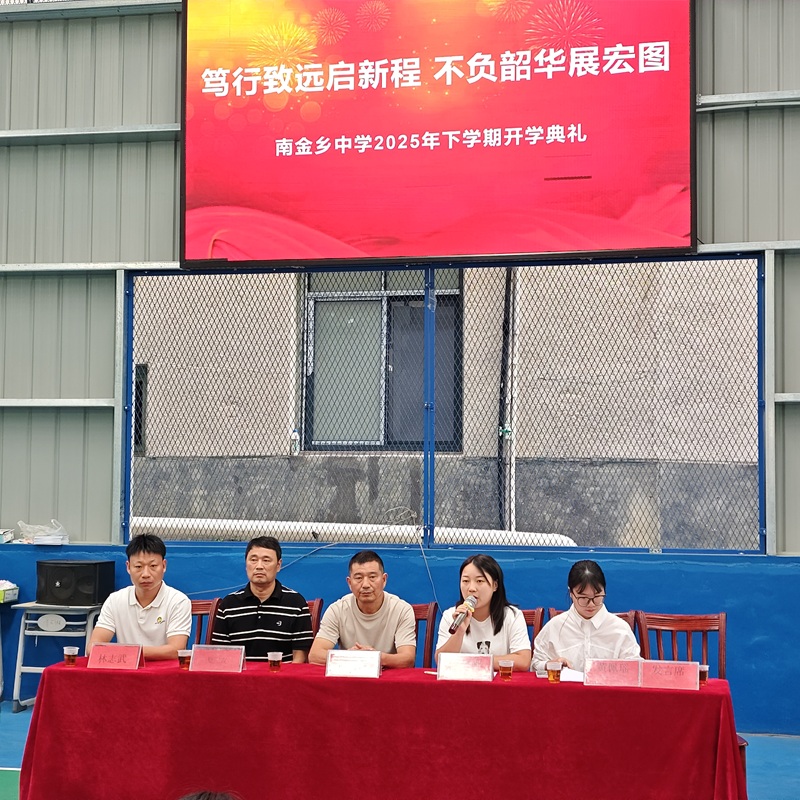 本网讯 9月19日,南金乡中学全体师生齐聚中远海运球场,以饱满的精神状态隆重举行了新学年的开学典礼,共同翻开了新学期崭新的一页。活动由教务主任黄佩瑶主持。 典礼在庄严的国歌声中拉开帷幕。校长周容亚发表了热情洋溢的新学期致辞。她首先代表学校向新加入的师生表示热烈欢迎,并回顾了过去一学年学校取得的丰硕成果。面对新起点向同学们提出了殷切期望:希望同学们志存高远,勤学善思,锤炼品格,在新征程上不断超越自我,书写青春华章。 紧接着,新教师代表张彤上台发言。她表达了成为一名光荣人民教师的喜悦与自豪,并表示将恪尽职守、潜心育人,与同学们共同成长,为学校的发展贡献全部力量。七年级新生代表夏奕如同学则在发言中抒发了对初中生活的憧憬与期待,承诺将严格遵守校规校纪,刻苦学习,以优异的成绩回报师恩。 在激动人心的颁奖环节,学校对上一学年在学业、德育、文体等方面表现突出的优秀师生进行了表彰。南金乡中心学校工会主席、督学夏干华高度肯定了学校取得的办学成绩,并对学校新学年的发展提出了指导性意见和美好祝愿,希望全体师生同心同德,再创佳绩。 开学典礼在热烈的掌声中圆满落幕。新的号角已经吹响,全体师生必将以崭新的姿态、饱满的热情投入到新学年的工作和学习中,共同开创南金乡中学更加美好的明天! 初校初审:林志武 复校复审:黄佩瑶 终校终审:周容亚