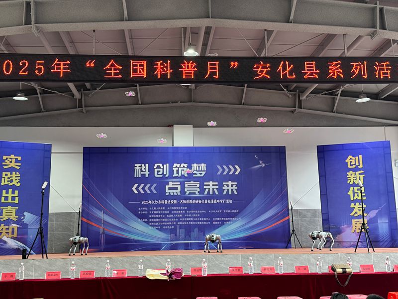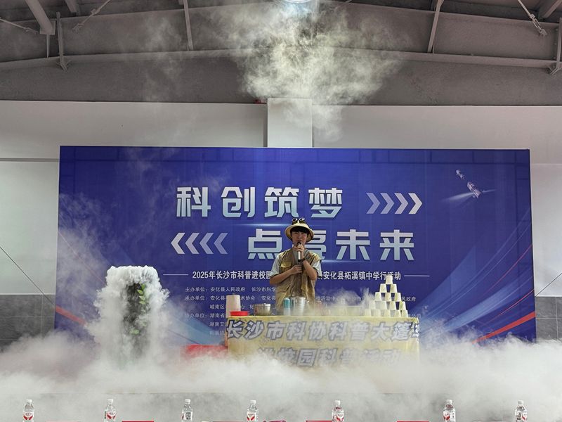 本网讯 9月10日,“长沙市科普进校园·名师送教送研安化行”活动在分会场柘溪镇中学举行。本次活动以“科创筑梦,点亮未来”为主题,通过无人机编队表演、机器狗互动、科普秀、名师课堂等多种形式,分活动区、体验区、展示区、授课区进行,为乡村学子带来一场沉浸式的科技盛宴。 上午9点的柘溪镇中学礼堂,一架架无人机腾空而起,机器狗灵活穿梭,引来阵阵惊呼。紧接着,一场别开生面的科普秀将气氛推向高潮——自制脉冲炮轰鸣作响,而液氮倾泻瞬间化作云雾缭绕的奇幻景象,恍若《西游记》中的天宫降临人间。学生们仿佛腾云驾雾,置身于科学与神话交融的梦幻世界。 随后,学生们分不同区域参加了丰富多彩的科普项目。在授课区,中国发明协会中小学创造教育分会会长谭迪熬带来《科技创新大讲堂》,以生动案例和自身经历激发学生的发明热情;湖南省谭嗣同爱国公益基金会理事长谭裔则以《科技强国梦启航,爱国精神代代传》为主题,引导学生树立科技报国志向…… 此外,在其他区域,机器人编程、AI绘本创作、模拟飞行、3D打印、科普大篷车等十余个项目也吸引了大量学生驻足。他们亲手操控机甲、体验无人机穿越、参与智能对抗,在互动中感受科技的魅力。 柘溪镇中学校长邓建丰表示:“这次活动不仅带来了前沿科技,更点燃了孩子们对科学的热爱与向往。”长沙市科协党组成员、副主席夏立新在讲话中强调:“科普进校园是打通科学传播‘最后一公里’的重要举措,我们要让每一个孩子都能触摸未来、敢于梦想。”这次活动,不仅打破了城乡科普资源壁垒,更在孩子们心中种下了科学的种子。