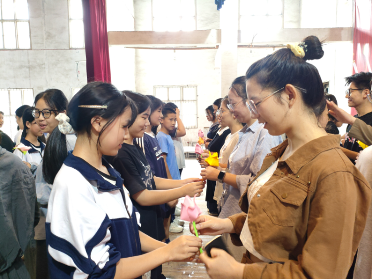 本网讯 9月10日,田庄乡中学举办了"师恩情深,感谢有您"教师节献花活动。 活动在庄严的仪式中拉开帷幕。校长首先致辞,向全体教师致以节日的祝贺和崇高的敬意,并勉励同学们常怀感恩之心、勤奋学习。 随后便是献花环节。此前,在美术老师和班主任的悉心指导下,同学们巧妙运用彩纸、皱纹纸等环保材料,将废旧物品化作一朵朵独具匠心的手工花。这些凝聚着感恩与创意的手工花束,不仅展现了同学们的巧思妙想,更承载着对老师深深的敬意与祝福。献花仪式上,优秀少先队员代表向全体教师献上这些凝聚着真诚祝福的手工花,并齐声高呼:“老师,您辛苦了!祝您节日快乐!”温馨的场面令许多教师感动不已。 一位老师表示:“收到同学们亲手制作的花,感觉特别温暖。每一朵花都代表着孩子的心意,这是最好的教师节礼物。” 一名献花学生也开心地说:“一束手工花,代表着我们对老师的崇敬,希望您今天能开心!” 初审初校:廖文轩 复审复校:谌银姣 终审终校:李晋锋