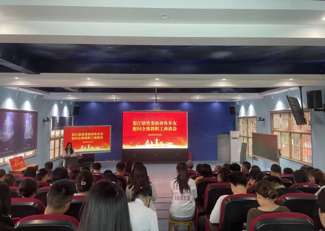 本网讯 9月10日上午,渠江镇组织全体教职工召开教师节座谈会暨师德师风优秀事迹宣讲活动。渠江镇党委政府领导、心系桑梓的乡友人士、爱心企业代表与全镇教职工参加会议。 座谈会在庄严的的国歌声中拉开序幕。渠江学校小学部的少先队员代表以真挚的献词表达了对老师们的节日祝福和深深的敬意。随后,渠江镇党委副书记、镇长尹俐宣读了慰问教师名单,北京坤元至诚资产评估有限公司湖南分公司、深圳前海百科财税代理集团有限公司等爱心企业及乡友向渠江镇中心学校进行了捐赠授牌。 在师德师风优秀事迹宣讲环节,三位师德标兵代表依次分享了自己的教育故事。渠江学校初中部老师夏锐动情地讲述了他作为班主任与特殊孩子相处的经历:“从‘改造式教育’到尝试‘践行培养式教育’,我在不断地收获成长,这些收获都是从孩子们那里‘偷’来的。只要看到孩子们渴望知识的眼神,我们就有了坚持下去的力量。” 渠江镇中心学校党支部书记、校长刘跃兵在发言中表示,三位教师的宣讲是渠江镇师德师风建设的缩影。他号召全镇教职工以标兵为榜样,坚守教育初心,担当育人使命。 渠江镇党委书记陈梦姣在讲话中高度肯定了全镇教师队伍的贡献,同时她对全体教职工提出四点希望:始终保持教育初心、保持学习定力、保持以德育人的理念,永葆一颗仁爱之心。