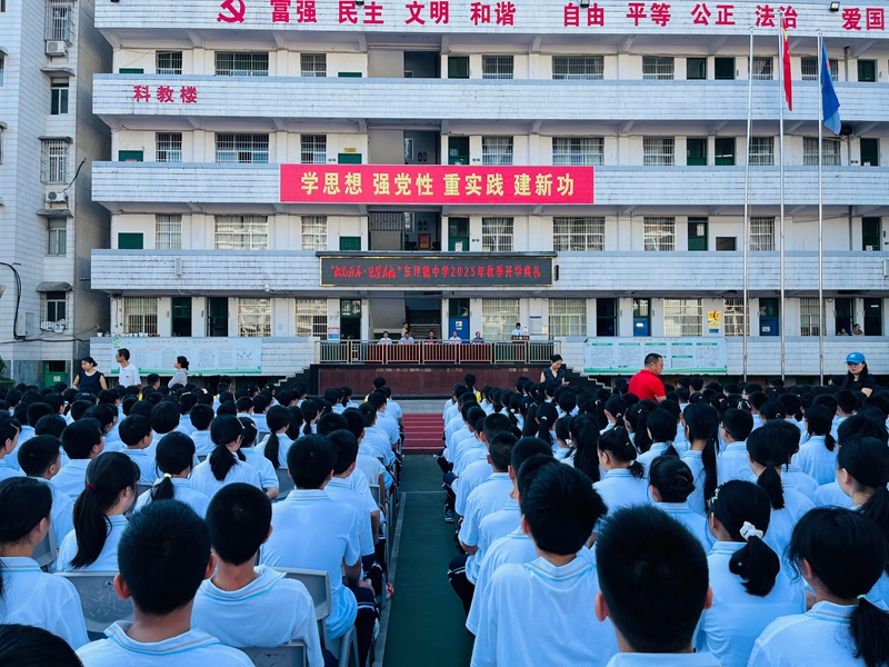 本网讯 9月5日上午8:08,天朗气清,风和日丽,东坪镇中学举行了2025年秋季开学典礼,正式拉开新学期的帷幕。 开学典礼由该校团委书记陶宇主持。庄严的升国旗仪式后,学校党支部书记、校长王飞发表致辞。他代表学校对20余位新教师和830余名新生表示热烈欢迎,并向全体师生送上美好祝福。王飞校长回顾了上学期学校秉持“忠勤诚勇”校训,务实进取的工作情况,同时提及9·3抗战胜利80周年阅兵中80面战旗猎猎飘扬的壮观场景,激励师生铭记历史、守护和平、立志科技报国。他希望大家珍惜在学校的学习和工作时光,苦练本领、强健体魄,讲好英雄故事与东中故事,努力成长为堪当民族复兴重任的新时代少年。 随后,新教师代表罗敏俊发言。他表示,将以饱满的热情、对教育事业的无限热爱与忠诚,恪守教师职业道德,勤勉教学、用心育人。三个年级的学生代表也先后登台发言,表达了新学期的豪情与决心。最后,该校政教处主任王强对上学期取得优异成绩的班级和学生进行了总结表彰,为他们颁发了奖项,并寄语全体学生以优秀为榜样,不断进步,努力书写2025年的精彩篇章。 初审初校:谢明智 复审复校:邓峥 终审终校:刘卫安
