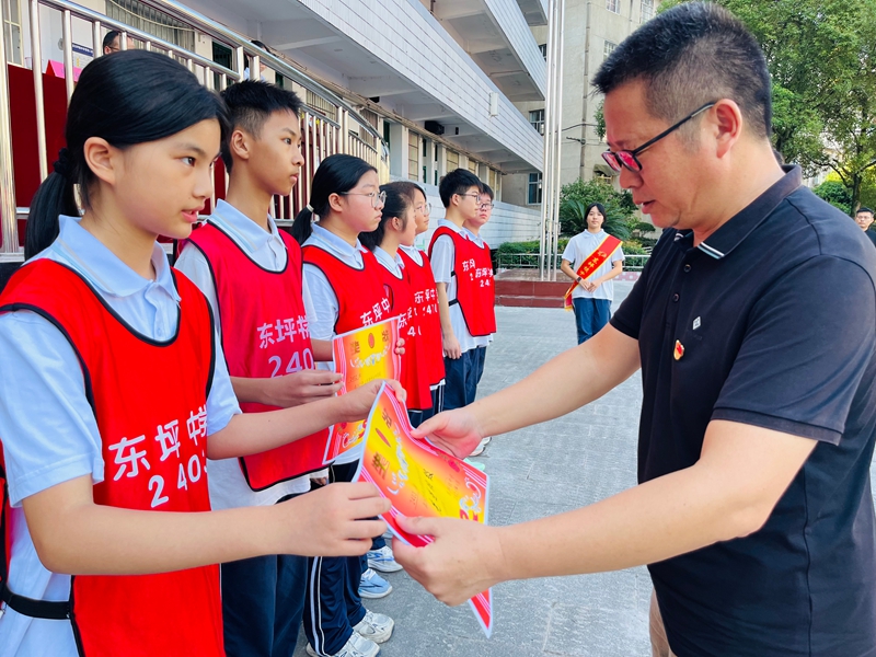 本网讯 9月5日上午8:08,天朗气清,风和日丽,东坪镇中学举行了2025年秋季开学典礼,正式拉开新学期的帷幕。 开学典礼由该校团委书记陶宇主持。庄严的升国旗仪式后,学校党支部书记、校长王飞发表致辞。他代表学校对20余位新教师和830余名新生表示热烈欢迎,并向全体师生送上美好祝福。王飞回顾了上学期学校秉持“忠勤诚勇”校训,务实进取的工作情况,同时提及9·3抗战胜利80周年阅兵中80面战旗猎猎飘扬的壮观场景,激励师生铭记历史、守护和平、立志科技报国。他希望大家珍惜在学校的学习和工作时光,苦练本领、强健体魄,讲好英雄故事与东中故事,努力成长为堪当民族复兴重任的新时代少年。 随后,新教师代表罗敏俊发言。他表示,将以饱满的热情、对教育事业的无限热爱与忠诚,恪守教师职业道德,勤勉教学、用心育人。三个年级的学生代表也先后登台发言,表达了新学期的豪情与决心。最后,该校政教处主任王强对上学期取得优异成绩的班级和学生进行了总结表彰,为他们颁发了奖项,并寄语全体学生以优秀为榜样,不断进步,努力书写2025年的精彩篇章。 初审初校:谢明智 复审复校:邓峥 终审终校:刘卫安