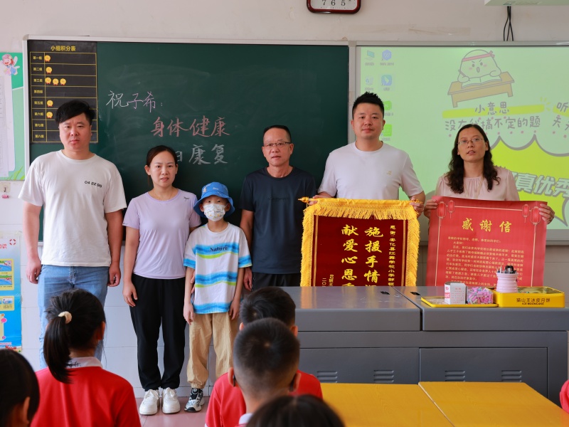 本网讯 9月3日,江英学校举行一场温馨的锦旗赠送仪式。小学部82班子希的家长将三面锦旗分别献给学校董事会、小学部及其所在班级,以此感谢全校师生在孩子重病之际伸出援手。校董事长谢仁和、校长谢豪、党建指导员刘艳等出席仪式。 去年,子希突发重病、生命垂危,家庭陷入困境。学校了解情况后,迅速发起爱心募捐,全校师生与家长积极响应,短短时间筹集善款十万元,为救治工作提供了关键支持。经及时手术与持续治疗,子希现已转危为安,身体逐步康复。 仪式上,谢仁和还代表学校董事会送上爱心红包,鼓励子希早日康复。子希爷爷感动落泪:“孩子是不幸的,但更是幸运的——他遇到了江英学校这样有爱的大家庭。你们真正把孩子的安危放在心上,用行动诠释了‘一方有难,八方支援’的大爱。” 这场生命的接力,不仅传递了温暖与希望,也彰显了江英学校的教育情怀与担当,成为一堂真实而深刻的爱心教育课。(通讯员 刘艳 刘港华) 初审初校:夏 媛 二审二校:李雨宸 三审三校:谢 豪 |