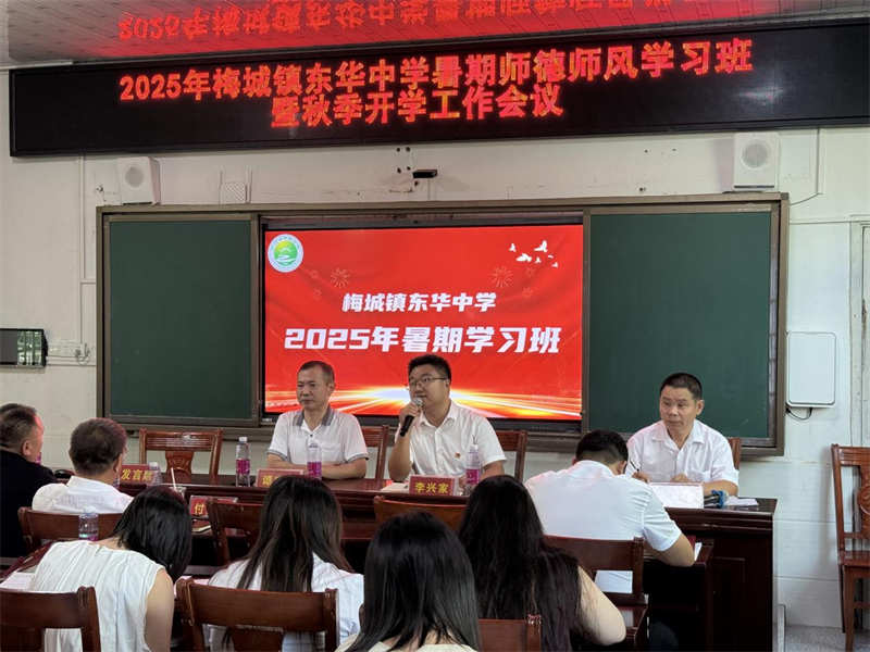 本网讯 8月29日至31日,梅城镇东华中学成功举办为期三天的暑期教师学习培训班暨秋季开学工作部署会。此次会议以"教育赋能,砥砺前行"为主题,通过系统化培训与战略性部署,为新学期教育教学工作注入强劲动能,擘画学校高质量发展新蓝图。 暖场活动惊喜不断、幸福洋溢。教师们盛装出席,步伐坚定走过百米红毯,朱红拱门似灯塔,引领他们迈向教育新征程,教师脸上满是自信热忱。红毯两侧,“幸运红包墙”壮观,百余福袋待抽。教师随机抽取时的惊喜、现场的欢声笑语,奏响新学期奋进序曲。这场迎新仪式,既礼赞教育初心,更宣誓未来征程。 本次会议由办公室主任曹靖阳主持并宣布了人事异动情况。政教处主任陈勋通过案例分析开展安全培训,筑牢校园安全防线;副校长肖智作《坚守教育初心,勇担育人使命》专题报告,从理想信念、道德情操、育人智慧三个维度深化师德建设。副校长眭向葵以大数据为支撑,作《2025年上学期教学质量诊断报告》,通过纵向对比、横向分析,精准定位教学短板,科学制定改进策略。工委主席付业文解读《教师周转房管理实施细则》,从生活保障层面解除教师后顾之忧。党部书记、校长李兴家在《乘东风、顺天时、聚人心、谋发展》主题报告中,系统回顾学校在课程建设、师资培养、五育融合等领域取得的突破性进展,并立足基础教育改革大势,提出"三个聚焦"发展战略:聚焦课程改革构建生态课堂,聚焦教师发展打造专业共同体,聚焦文化育人涵养精神品格。会议最后,由办公室宣布了此次人事分工,通过"定岗、定责、定标"三定机制,确保各项工作精准落地。 梅城镇中心学校尊点领导谭良玉、刘慈军应邀出席本次会议并作了重要发言,为学校发展注入智慧力量。 初审初校:曹靖阳 复审复校:肖 智 终审终校:李兴家