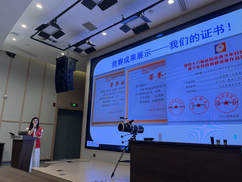 本网讯 8月9日,南金乡中学的学生科创成果展示活动在益阳市科技馆成功举行。该校柑橘社团与天文社团的学生们联袂登台,通过创新实践项目,生动展现了“双减”政策背景下乡村学校科学教育的活力与成效。益阳市科技馆副馆长文武斌全程参与活动,益阳天文学会理事长谭永鑫担任现场专业点评嘉宾。活动由安化县南金乡政府党委委员谭建华、南金乡中心学校校长夏晶组织,7名学生家长到场观摩。 本次成果展示分上下午两场进行。上午,柑橘社团以辅导员周慧老师作《我的科创历程:南金乡柑橘探究之旅》为主题展开活动。三名学生担任讲解员,引导观众从生活现象出发,运用数学测量、信息分类等科学方法探究水果的甜酸奥秘,完整呈现了“提出问题—实践验证”的科研过程。参与者现场使用pH试纸、糖度仪等工具检测不同品种柑橘的酸甜度,直观感受科技手段对本地特色产业的支撑作用。 下午的活动由天文社团辅导员杨峥嵘老师主讲,4名社团成员现场展示,一同将星空“搬”进科技馆,向观众普及天文望远镜操作知识与观星技巧。活动现场互动热烈,尤其在望远镜组装体验环节,青少年观众踊跃参与。当体验者通过望远镜清晰观测到模拟月球影像时,反响尤为积极。社团成员还展示了在乡村自主拍摄的天文照片,包括月球环形山、太阳黑子、星空星座及土星光环等,引发观众阵阵赞叹。 谭永鑫在专业点评中高度肯定了学生们的表现:“从设备调试到数据分析,学生们展现的科研素养不逊于城市学生,令人印象深刻。”他特别赞赏学校将深奥天文学知识转化为可参与、可体验的科普实践模式。 夏晶表示,此次市级科普实践平台有效提升了学生的科学素养与综合能力。下一步,南金乡将以本次活动为契机,持续探索“课堂延伸至田间果园,知识转化为惠民工具”的乡村教育新路径。