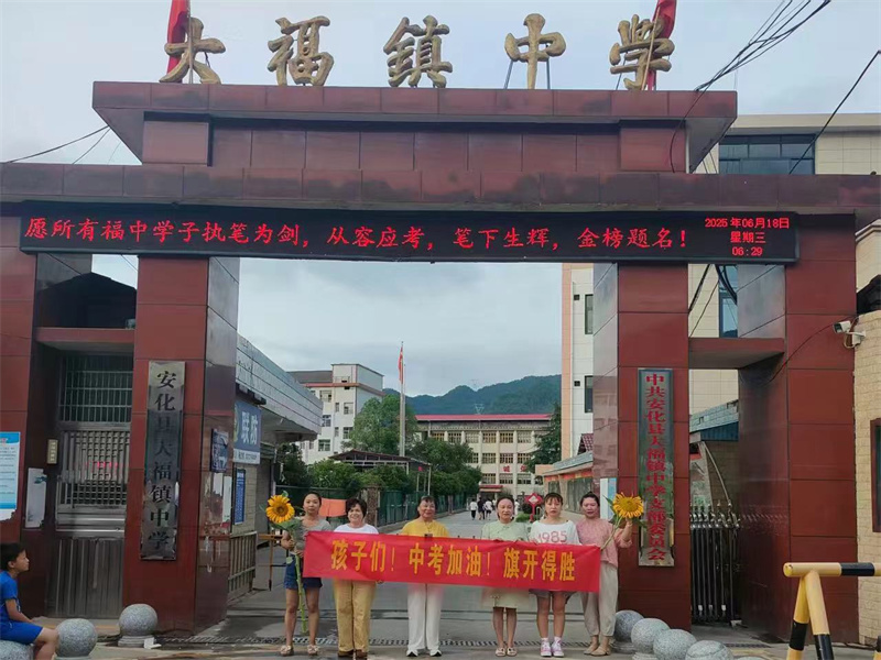 本网讯 6月18日,中考首日,大福镇中学451名学子迎着朝阳奔赴考场,以饱满的精神状态迎接人生重要一战。