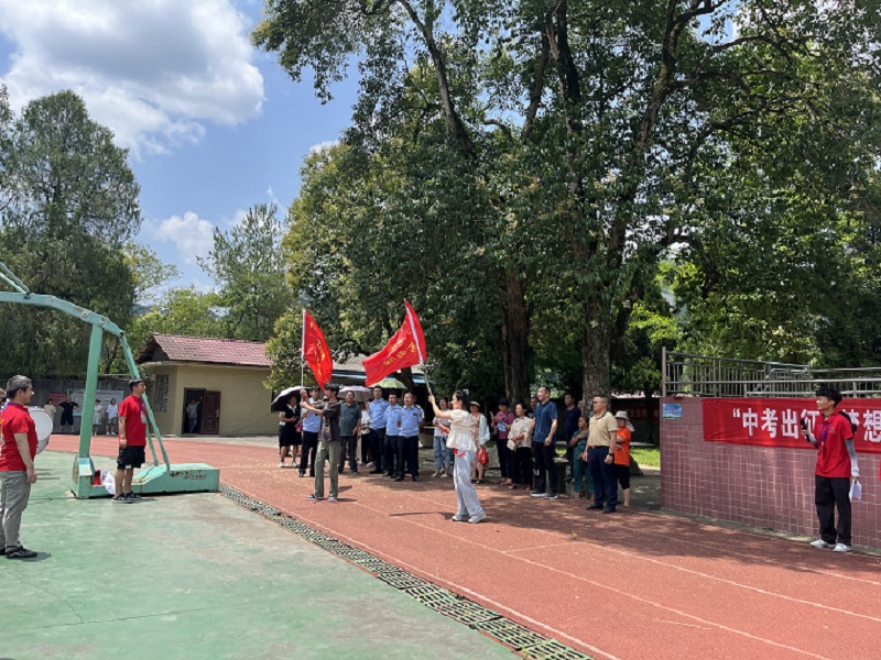 本网讯 6月17日,古楼乡全体师生齐聚操场,为该校初三学子举行中考出征仪式。红旗招展,誓言铿锵,全校师生以最饱满的热情为即将奔赴考场的学子壮行助威。 11点35分,出征仪式在雄壮的国歌声中拉开帷幕。 出征伊始,校长彭忠明为中考出征仪式致辞,他勉励学生:“中考是人生的第一场重要战役,但绝不是终点,希望同学们以平常心应考,用拼搏精神突破自我。”九年级教师代表石继荣用心祝愿同学们青春正好,一路生花,花开盛夏。接着,初三学生代表夏绪婷做表态发言,她表示:“我们将不负厚望,不负嘱托、不负韶华!”发言结束后,由2201班夏有情同学带领全体初三学子进行中考宣誓,宣誓声洪亮有力,充满力量与决心。 出征在即,古楼乡中心学校校长夏丁然为初三学子授予中考出征大旗。 授旗仪式结束后,夏丁然下达出征命令,宣布出征。全体初三学子整齐列队,各班代表高举出征旗,依次走过成功门。校领导与教师们分列红毯两侧,为考生击掌助威。初一、初二学生高举“金榜题名”、“超常发挥”等加油横幅,为学长学姐们加油呐喊。在大家的加油祝福声中,学生们带着自信的微笑,迈着矫健的步伐走出校门,踏上了他们的梦想之路。 初审初校:孙薇 复审复校:张勇 终审终校:彭忠明