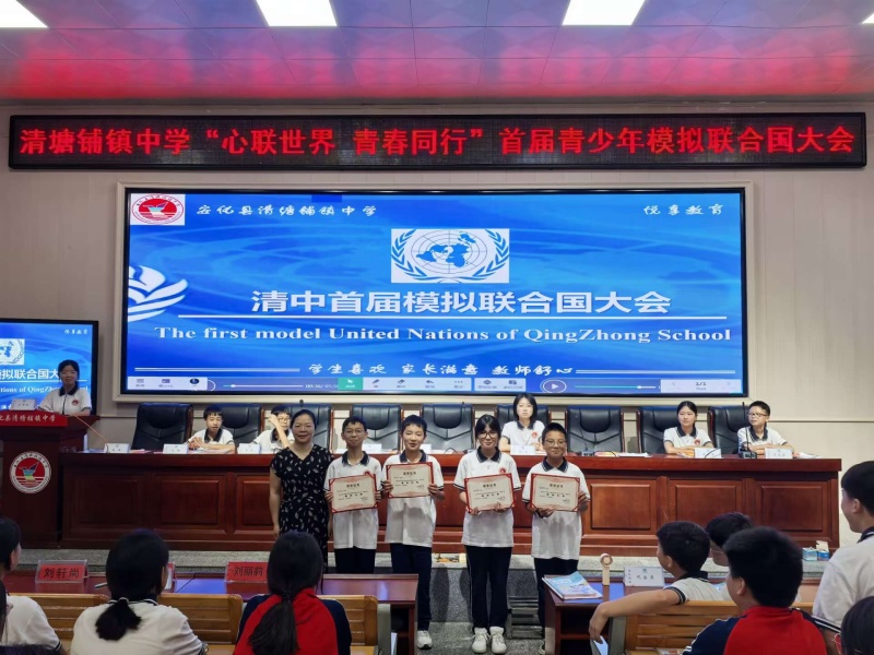 本网讯 6月13日,清塘铺镇中学首届青少年模拟联合国大会在该校多功能报告厅隆重举行。266班学生作为“国家代表团”参与会议,259班与258班学生担任“观察团”。校长刘丽莉及陈彦霞、严瑛等教师代表组成评审团。 本次活动聚焦“全球青少年心理健康危机的应对”,旨在通过模拟联合国议事流程,拓展学生国际视野,培养责任意识与批判思维。在大会主席曾玉洁同学的主持下,各国代表依次进行立场陈述。代表们立足所代表国家的实际情况,就心理健康教育体系建设、心理咨询资源分配、数字技术应用等议题提出富有建设性的观点,每位代表的发言都展现出扎实的调研基础和独到见解。自由磋商环节,代表们围绕本土化策略、资源分配、技术干预三个核心角度展开深入讨论。代表们既坚持原则立场,又展现出灵活务实的态度,通过反复沟通协商,最终形成了三份具有建设性的决议草案。经过代表们认真审议,C组草案获得高票通过,这一过程充分展现了同学们的国际视野和解决问题的能力。 俄罗斯代表曹悦表示:“这次活动让我深刻体会到国际事务的复杂性,也认识到沟通协商的重要性。”观察员代表谭芊也分享了她的观察笔记:“不同国家代表在维护本国利益的同时,都在为共同解决问题而努力,这种精神令人感动。” 刘丽莉高度肯定了同学们的表现,她强调:“今天的模拟联合国大会,正是我们践行'在做中学'教育理念的生动实践。同学们通过角色扮演、议题研讨,不仅培养了家国情怀,更拓展了全球视野。首届大会的成功举办只是一个开始,我们要将这项富有意义的活动坚持下去,为孩子们提供锻炼成长的平台。”评审团随后揭晓并颁发了“最佳代表奖”和“最佳观察员奖”,以表彰在会议中表现尤为突出的同学。 初审初校:张剑文 复审复校:刘精快 终审终校:刘丽莉