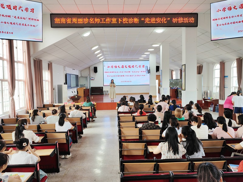 本网讯 6月5日,湖南省周丽珍名师工作室“走进安化”研修活动暨安化县东坪镇城南完小语文项目式学习展示活动,在东坪镇城南完小精彩启幕。此次活动以“小学语文遇见项目式学习”为主题,通过主题讲座、案例分享、实践操作等多元形式融合开展,邀请了县教师发展中心、东坪镇中心学校及多所兄弟学校的教师代表参与。 活动在校方致辞中拉开序幕。在特色案例展示环节,“守护遗产小使者文化传承行动”等实践成果,借助视频、学生作品等鲜活载体,生动呈现了项目式学习如何激发学生的文化感知力与实践行动力;专题讲座环节,专家团队对项目式学习的理念价值、实施策略进行了深度剖析;互动研讨环节,众人聚焦大单元教学背景下的项目任务设计,展开热烈探讨。活动压轴设置互动工作坊,围绕“项目式学习设计”开展现场实践。参与者动手设计项目,将理论学习转化为实操能力,现场气氛热烈。 学校相关负责人表示,后续将持续深化项目式学习研究,推动语文教学改革,助力学生核心素养全面提升。 初审初校:刘 静 复审复校:蔡丽旭 终审终校:张密田