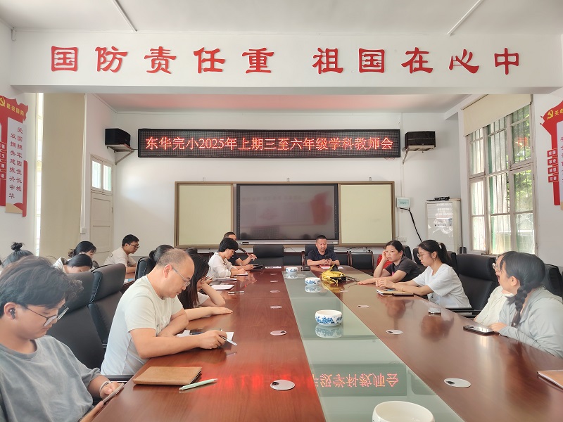 本网讯 6月4日下午,梅城镇东华完小组织召开了三至六年级学科教师会议。会议由教务处主任文毅主持,三至六年级语文、数学、英语、道德与法治、科学等学科教师共同参与。