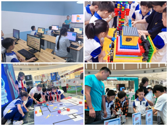 首先,老师们用生动活泼的语言,为孩子们讲解了用积木搭建的各类航天模型。紧接着,同学们走进了人工智能的世界与智能机器人进行亲密互动,学会远程操控智能机器人将所有积木方块运到终点。最后,同学们围绕创造海洋世界,学习图形化编程,在代码与指令间,精准移动大鲨鱼。