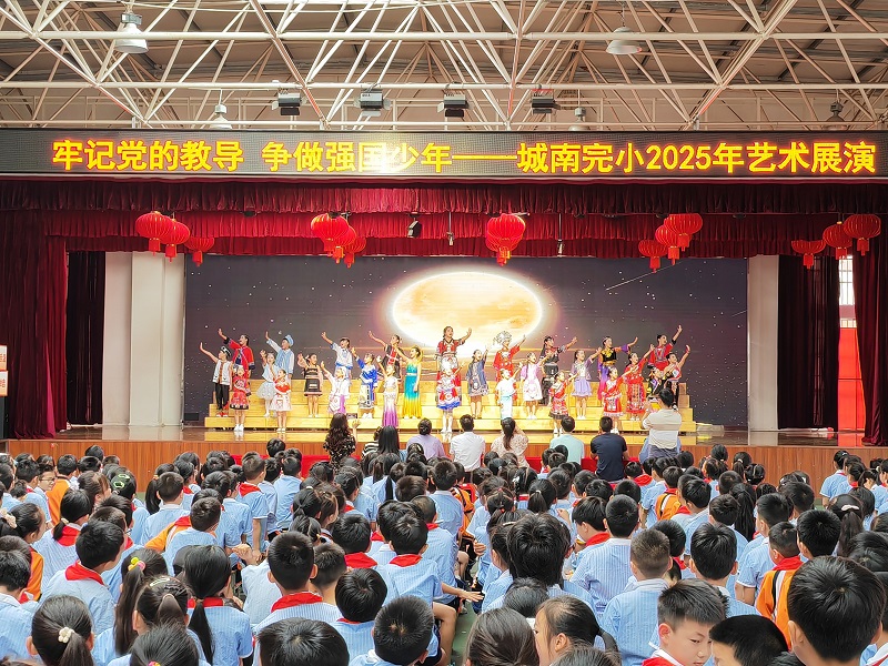 本网讯 5月28日至30日,东坪镇城南完小以“牢记党的教导 争做强国少年”为主题,开展了一系列精彩纷呈的六一庆祝活动。通过入队仪式、美食节、艺术展演及班级联欢会等形式,让孩子们在欢乐氛围中度过了富有意义的节日。 学校礼堂内,一二年级新队员入队仪式率先举行。在嘹亮的鼓号声中,党员教师和退休教师为新队员们佩戴上鲜艳的红领巾,新队员们高举右拳,齐声宣誓,正式加入中国少年先锋队。仪式特别设置了亲子互动环节,让家长共同见证孩子成长的重要时刻。