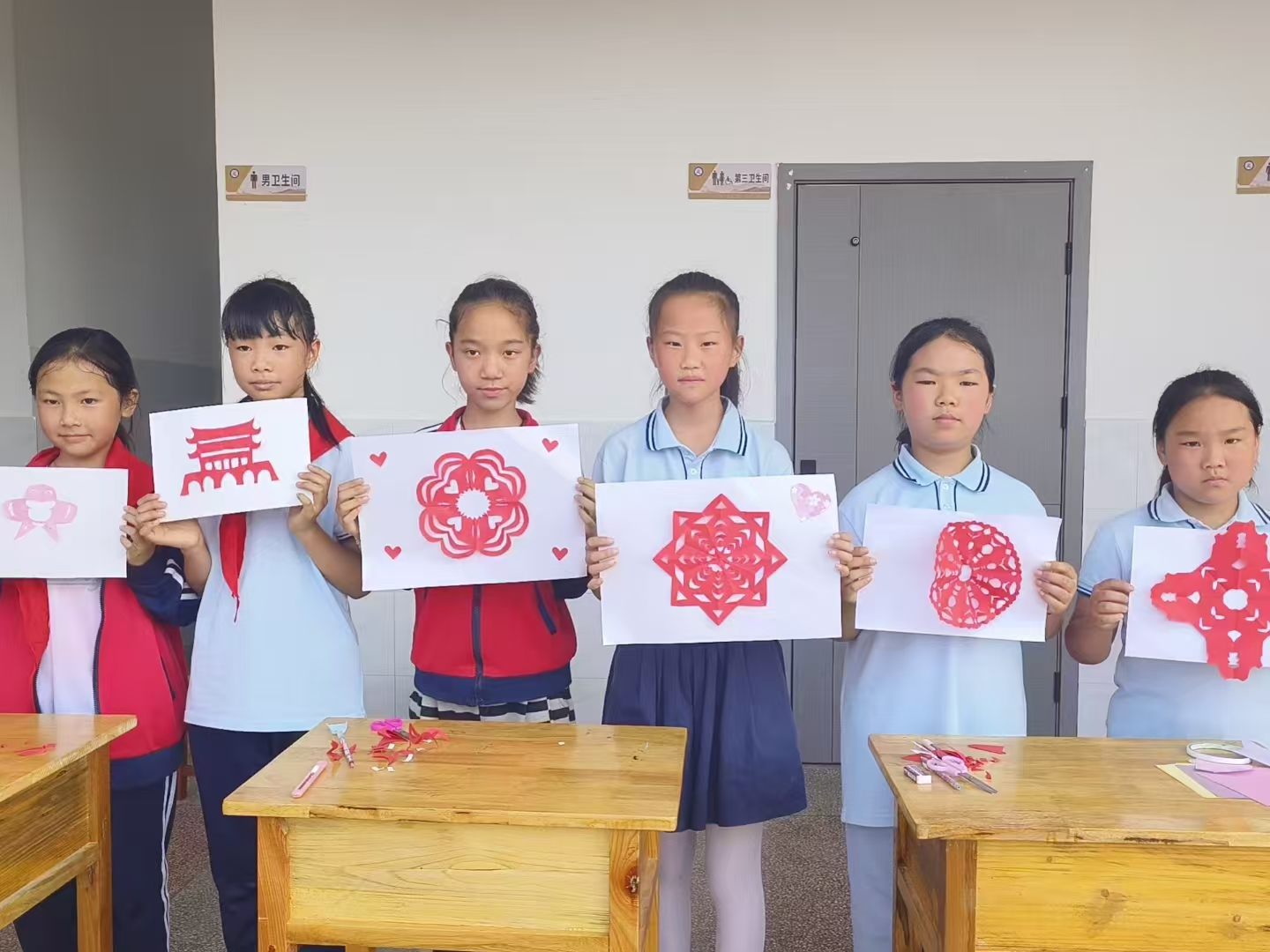 一年级学生认真叠秋冬校服,比拼整齐度。二年级学生快速系鞋带,展现手部灵活。三、四年级用彩纸创作剪纸作品,展示创意和艺术能力。五、六年级开展内务整理比拼,彰显生活技能与自律风采。