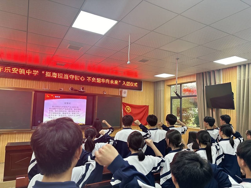 本网讯 5月15日,乐安镇中学举行“挺膺担当守初心 不负韶华向未来”入团仪式,激励青年学子传承红色基因,勇担青春使命。 仪式在庄严激昂的国歌声中拉开帷幕,全体人员庄严肃立,用歌声表达对祖国的热爱与敬意。随后,学校团委书记蒋依同志宣读新团员名单,45名同学光荣加入共青团,为团组织注入了新鲜血液。 在佩戴团徽环节,老团员们郑重地为新团员佩戴上团徽,一枚枚闪耀的团徽,不仅是团员身份的象征,更承载着共青团的光荣与责任。紧接着,新团员们获发团员证,这意味着他们正式成为共青团大家庭的一员。在优秀团员曹泽婷的带领下,新团员们面向团旗,高举右拳,庄严宣誓。“我志愿加入中国共产主义青年团……”铿锵有力的誓言在会场回荡,每一位团员都经历了一次深刻的心灵洗礼,更加坚定了为国家、社会和人民服务的理想信念。 来自九年级的优秀团员肖依源同学、新团员彭蓁蓁同学作为代表先后发言。肖依源分享了自己入团后的成长感悟,鼓励新团员积极进取;彭蓁蓁则表达了成为团员后的自豪与决心,立志要以实际行动践行入团誓言,争做优秀共青团员,他们的发言说出了所有团员的心声。 活动最后,学校党支部书记蒋凤同志向新团员致以热烈祝贺与诚挚欢迎,并提出殷切期望。她勉励团员们在团组织的培养教育下,通过自身不懈努力,成长为有理想、有道德、有文化、有纪律的社会主义事业建设者和接班人,在青春的赛道上奋力奔跑。 初审初校:蒋依 复审复校:肖民权 终审终校:蒋波 ![]() ![]()