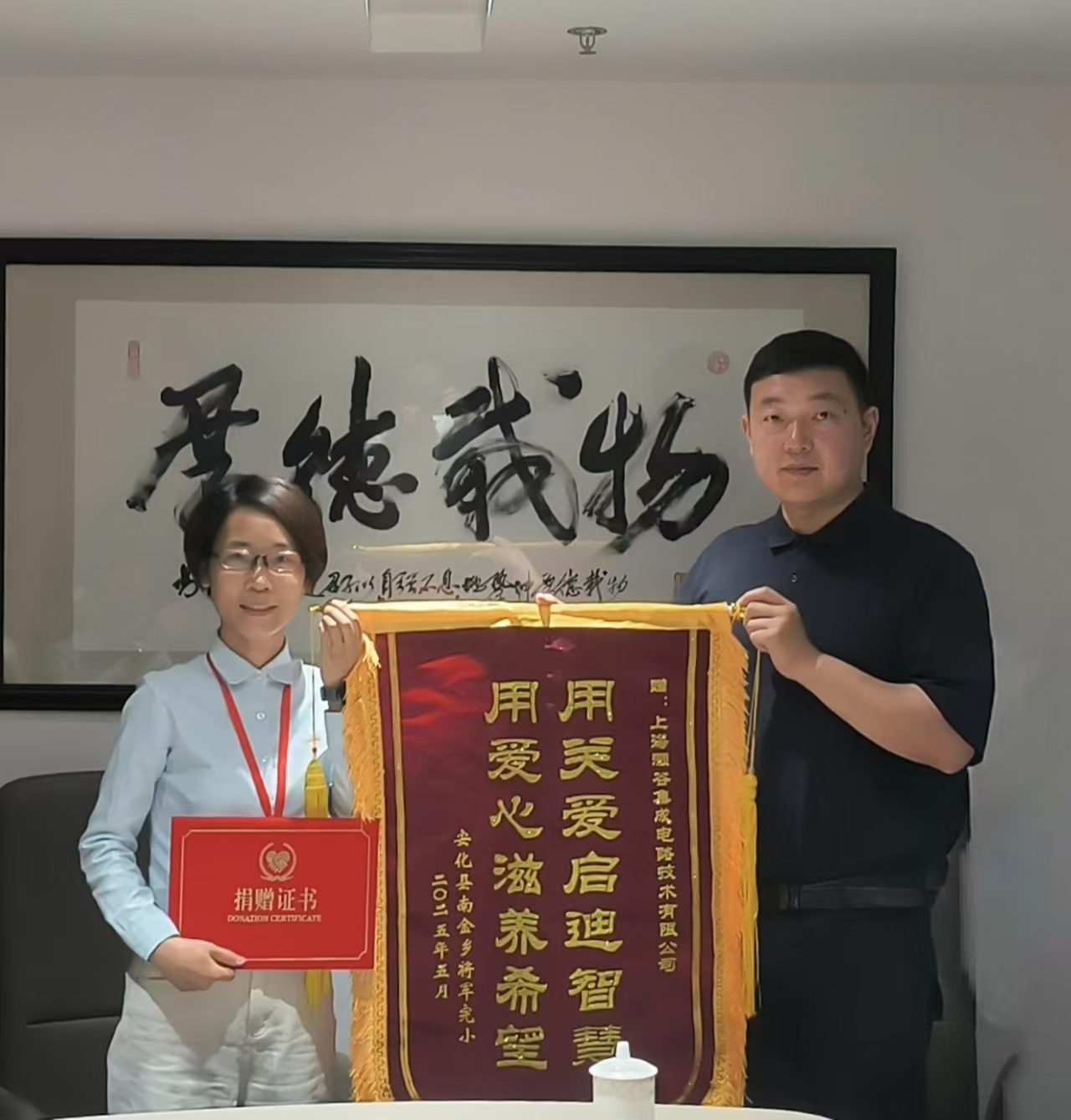 本网讯 5月12日,在南金乡九龙池村籍张智才先生的陪同下,上海灏谷集成电路技术有限公司董事长魏盘生、总经理汤卫兰、南金乡党委书记孟志刚、安化县圆梦教育基金会理事长刘仁先与安化县南金乡将军完小校长庞晓晓齐聚一堂,共同商讨南金乡将军完小捐资助学事宜。 活动中,将军完小校长庞晓晓对学校的办学现状、面临的困难及未来的发展规划作了详尽的汇报。魏盘生董事长与汤卫兰总经理表示,此次捐赠旨在助力乡村教育发展,资金将用于两大方面:一是改善学校的办公条件,包括更新办公设备、升级教学设施等;二是设立师生奖励金,用于激励教师提高教学质量、鼓励学生勤奋学习、全面发展。孟志刚书记对爱心企业的善举表示感谢,强调教育是乡村振兴的核心,希望通过多方合力为乡村孩子创造更优质的成长环境。 该校负责人表示,学校将合理使用善款,提升办学质量,不辜负社会各界的殷切期望,为乡村教育培养 初审初校:冉茂兰 复审复校:庞晓晓 终审终校:谌少准
