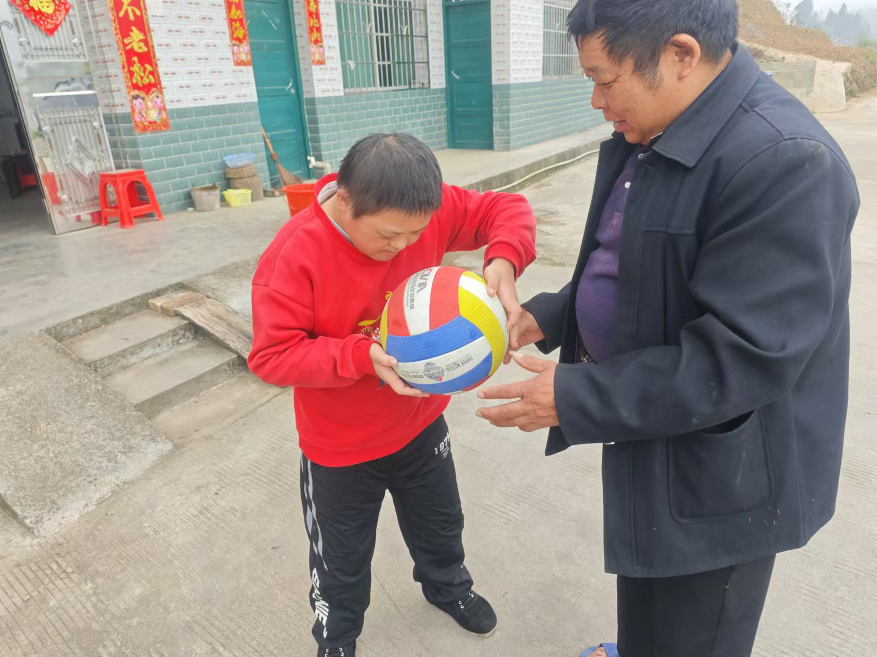 本网讯 5月9日,清塘铺镇鱼水学校校长赵军及送教老师周磊踏上了5月份的送教之路。 沿着蜿蜒的盘山公路,两位老师来到了清塘铺镇石溪村特殊学生小阔(化名)的家里。通过几年来的送教互动,小阔与老师们结下了深厚的感情,早在门外等候。 周老师拿出了一个排球,小阔对排球特别好奇,左摸摸右看看。然后周老师开始耐心的介绍,并演示了正面双手垫球的动作,最后协助小阔尝试垫球。小阔是先天智力低下,无法用语言跟他人沟通,肢体动作也不是特别协调,但从他的脸部表情和肢体动作可以看出来他对这个“新事物”非常的好奇。 “送教上门的学生因残疾程度重或缺乏自理能力,无法到特效就读,但作为特教工作者,我们不能放弃他们,要尽最大的努力从身体、心理、学习教育等方面给予帮助和支持。”赵军表示。 初审初校:孟玉波 复审复校:吴曙芳 终审终校:赵 军