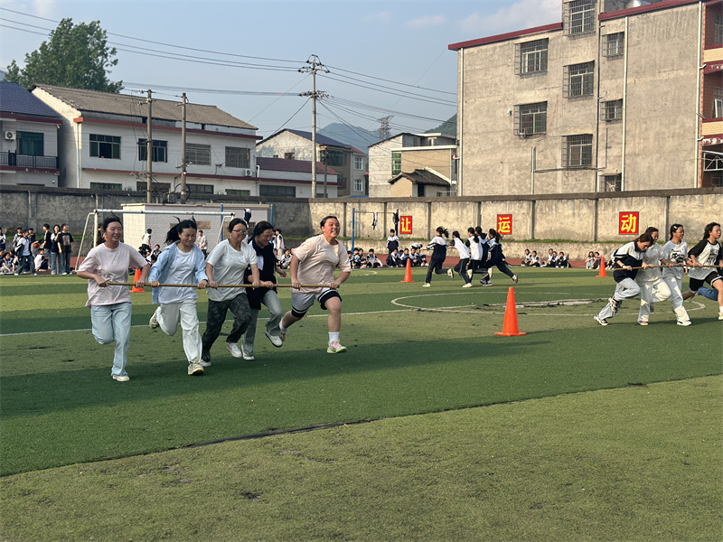 本次活动以“快乐运动,和谐校园”为主题,打破传统运动会模式,创新设计多项趣味团体项目,利用第八、九节课时间,师生共同参与,设置了“旋风跑”“赶猪”“横扫千军”“南水北调”等特色项目,兼顾团队协作与体能智慧。比赛过程中,师生们全情投入,加油声、欢笑声此起彼伏,充分体现了“友谊第一,比赛第二”的体育精神。