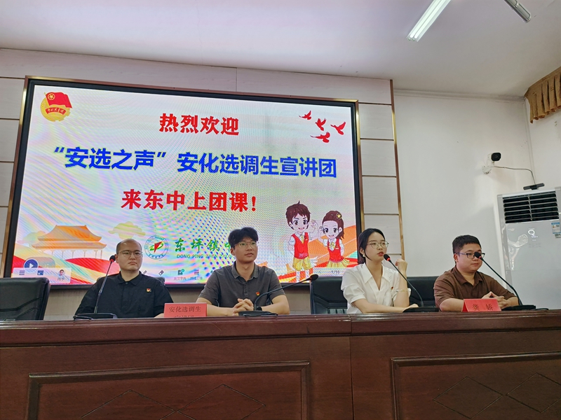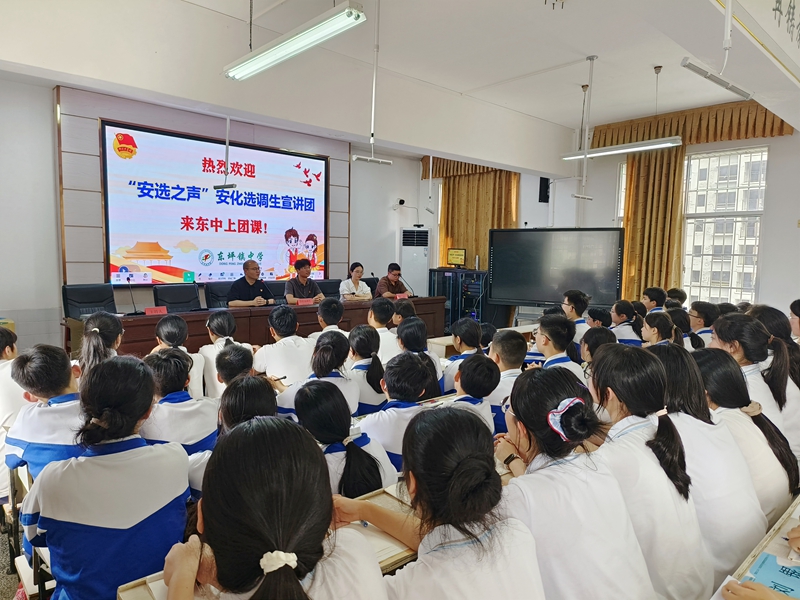 本网讯 5月7日第七节课,“安选之声”安化选调生宣讲团走进东坪镇中学,为全体团员带来了一场意义非凡的团课。 活动现场,同学们整齐就座,目光紧紧聚焦在讲台上。宣讲团成员东坪镇政府选调生龚娇凭借基层工作经验,以深入浅出、生动有趣的方式,分享了投身基层建设的难忘经历与深刻感悟。从乡村振兴战略实施过程中的点滴故事,到助力基层民生改善的实际举措,一个个真实案例展现了新时代选调生的使命担当,更深深吸引着同学们。 在互动交流环节,同学们积极踊跃提问,围绕 “如何平衡学业与社会实践”“基层工作面临的挑战与收获” 等话题展开热烈探讨。宣讲团成员结合自身经历,逐一答疑解惑,鼓励同学们珍惜校园时光,锤炼过硬本领,将个人理想融入时代发展浪潮,树立服务社会、奉献基层的远大志向。 初审初校:王子慕 复审复校:邓 峥 终审终校:刘卫安