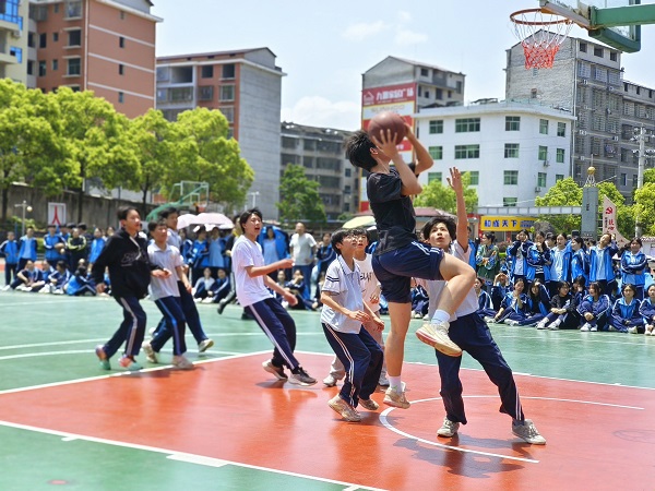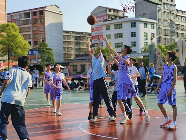 本网讯 近日,平口镇中学首届“青春飞扬杯”班级篮球赛在学校操场火热开赛,全校师生共同迎来这场充满活力与激情的体育盛会。 开幕式上,平口镇中心学校工会主席孟志中发表致辞。他强调,在新时代背景下,学生应牢固树立“健康第一”的理念,积极投身体育运动。同时,孟志中主席还号召全体师生尽情享受比赛乐趣,在运动中增强体质、健全人格、锤炼意志,以昂扬向上的精神风貌,展现新时代青少年的青春风采。 本次篮球赛由校长室统筹规划、精心部署,艺体组负责具体组织与实施工作。比赛采用小组循环赛、半决赛、决赛的赛制,赛程紧凑,为期四天,共将上演20场精彩绝伦的篮球对决。学校12个班级积极响应,组建参赛队伍踊跃参赛。值得一提的是,此次赛事不仅设有男子篮球赛,还特意增设女子中场投篮赛,旨在让每一位同学都能参与其中,感受篮球运动的魅力,激发全体学生的运动热情。 随着一声哨响,赛场上运动员们挥洒汗水、奋勇拼搏,用精湛的球技和默契的配合,为观众带来一场场视觉盛宴;场下,同学们呐喊助威声此起彼伏,充分展现了该校师生团结协作、积极向上的精神风貌。 据悉,学校因校内专业裁判数量不足,便向社会拓展资源,邀请当地柒玖篮球馆的篮球爱好者担任裁判。这些专业裁判以丰富经验和公正裁决,保障了赛事顺利进行,让比赛在公平公正环境中开展。 初审初校:夏明兰