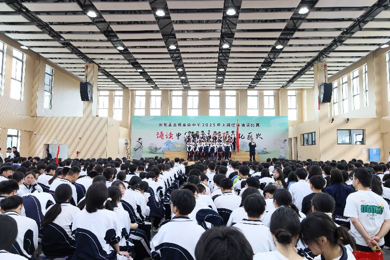 本网讯 4月26日,安化县五雅高级中学成功举办中华经典诵读比赛。高一、高二年级学生通过集体诵读形式,结合音乐、舞蹈等艺术表现形式,生动展现中华文化的深厚底蕴,让经典智慧滋养青春心灵,厚植爱国主义情怀。 28个参赛班级创新演绎中华经典,同学们将器乐演奏、诗歌朗诵与舞蹈表演有机融合,既彰显中华文化的永恒魅力,又展现当代学子的文化自信与民族自豪。