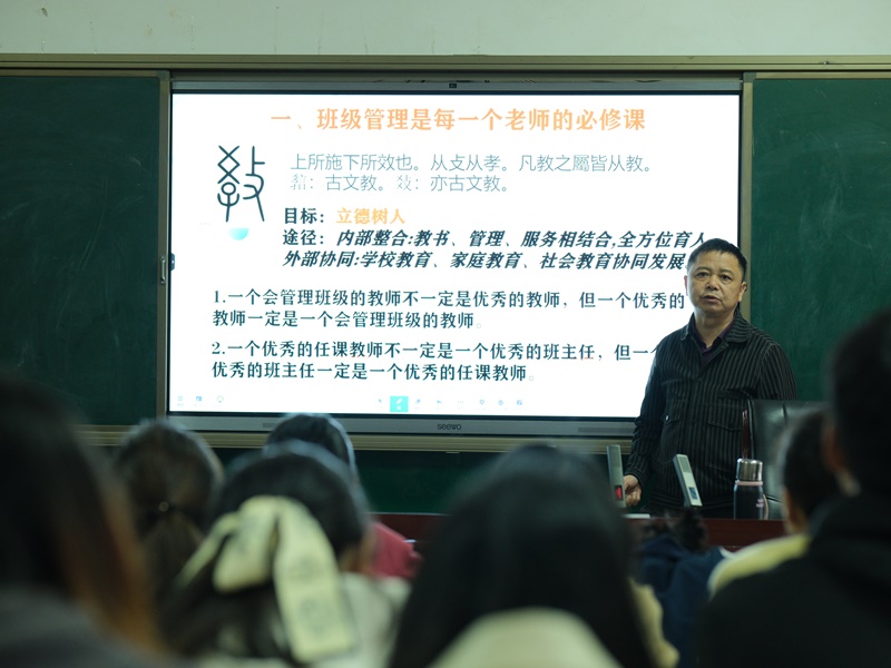 在班级管理专题环节,杨校长提出独到见解:“一个优秀的任课教师不一定能成为优秀班主任,但一个优秀班主任必定是出色的任课教师。”他倡导全体青年教师树立“全员育人”理念,将管理意识渗透到日常教学的每个环节。通过分享亲身带班经历,杨校长重点解析了环境管理和情绪管理两大核心课题:在环境管理方面,要营造积极向上的班级文化氛围;在情绪管理方面,要建立和谐的师生互动机制。
