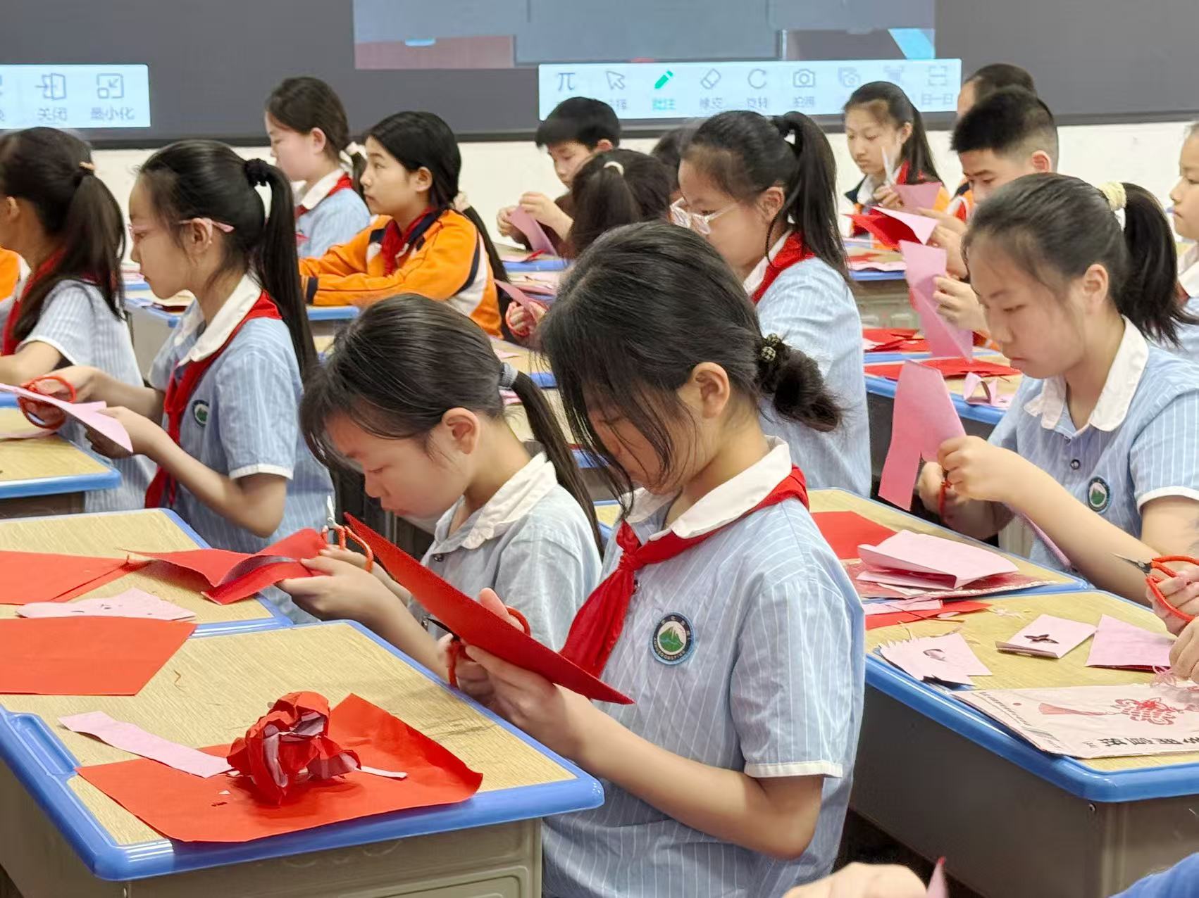 本网讯 4月18日,东坪镇城南完小追梦楼内红纸翻飞,笑语盈盈。国家级非物质文化遗产梅山剪纸代表性传承人向亮晶走进校园,开展"非遗大师进校园,一纸匠心启新程"非遗传承活动。县文化馆馆长康宁、非遗专干童胜青等嘉宾出席活动,与50余名师生共同见证非遗技艺的薪火相传。 活动中,向亮晶老师现场展示了梅山剪纸的精湛技艺,从构图方法到镂空技巧,将传统剪纸艺术娓娓道来。实践环节,师生们手持剪刀,在传承人手把手指点下完成了一件件生动作品。梅山剪纸社团班学生石可婧兴奋地说:“原来一张红纸能变幻出这么多花样,我要把今天剪的作品带回家给爸妈看!” 校长张密田介绍,学校一直重视传统文化教育,此前已成立梅山剪纸社团。此次邀请国家级传承人现场授课,不仅让学生学到了技艺,更增强了他们对传统文化的认同感。活动最后,师生们与传承人合影留念,记录下这难忘的时刻。 据悉,向亮晶老师从事剪纸艺术创作40余年,其作品多次在国内外展出并获奖。学校表示,今后将继续开展非遗文化进校园活动,让优秀传统文化在校园生根发芽。 初审初校:蔡丽旭 复审复校:封卫华 终审终校:张密田