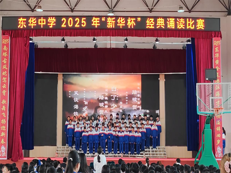 本网讯 4月11日,梅城镇东华中学开展2025年“新华杯”经典诵读比赛暨第30个“世界读书日”庆祝活动。 本次比赛以“诵千年经典,铸时代新声”为主题,旨在通过诵读经典诗文,传承和弘扬中华优秀传统文化,激发青少年的爱国热忱,增强文化自信。比赛现场氛围热烈而庄重,选手们怀揣着对经典的敬畏之心,以饱满的热情和精湛的诵读技巧,将一首首经典诗文演绎得酣畅淋漓,令人陶醉。从《如果没有李白》的浪漫遐想,带领观众穿越时空,感受诗仙的旷世才华;到《诗词歌赋里的中华》的深情颂扬,用优美的语言描绘出中华文化的博大精深;再到《大写的中国》的豪迈气概,展现了中华儿女的自豪与担当。特别值得一提的是,《诗词歌赋里的中华》以不同的篇章再次呈现,细腻的情感触动人心;而《少年中国说》的激昂诵读,更是喊出了新时代的青春最强音,激发了在场每一个人的爱国情怀。每一篇诵读都仿佛是一幅幅生动的画卷,让人沉醉其中,流连忘返。 经过激烈角逐,最终有12个班级脱颖而出,荣获一二等奖,他们的精彩表现赢得了师生们的阵阵掌声和高度评价。 初审初校:曹靖阳 复审复校:肖智 终审终校:喻彦平