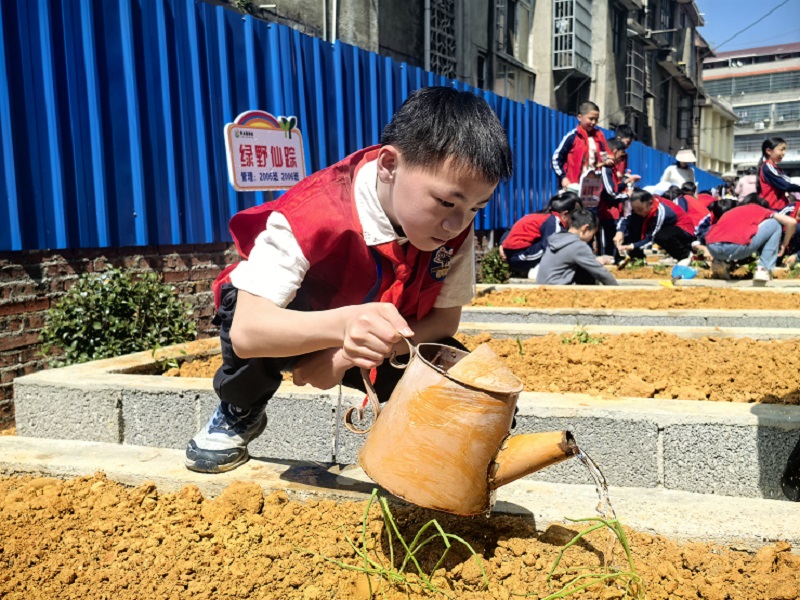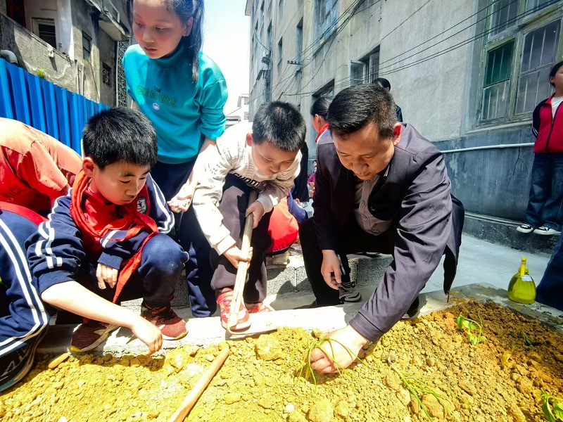 本网讯 4月10日,小淹镇完小迎来了备受期待的“资水童耕园”开园暨劳动实践基地启动仪式。校园里洋溢着蓬勃朝气,全校师生共同参与,开启劳动教育新征程。 仪式上,副校长刘永宏强调“资水童耕园”对劳动教育的重要性,鼓励学生在劳动中成长。随后,31个班级共同认领20块责任田。拿到责任田认领牌的那一刻,同学们眼中满是期待与兴奋。 紧接着,进入热火朝天的栽种环节。孩子们手持小锄头、菜苗与种子,在各自的“小天地”里忙得不亦乐乎。有的轻轻挖坑,有的小心翼翼地种下菜苗,还有的细心浇水,阳光洒在他们满是汗珠的脸上,映照出劳动的喜悦。“我从来没种过菜,这次能亲手种下属于自己班级的菜苗,感觉特别有意义,希望它们快快长大!”二年级学生陶子悦兴奋地说道。 学校负责人表示,未来,学校将依托这片实践基地,开展形式多样的劳动实践活动,让孩子们在劳动中磨炼意志、增长本领,真正实现德智体美劳全面发展。 初审初校:沈秀文 复审复校:刘永宏 终审终校:陶武军