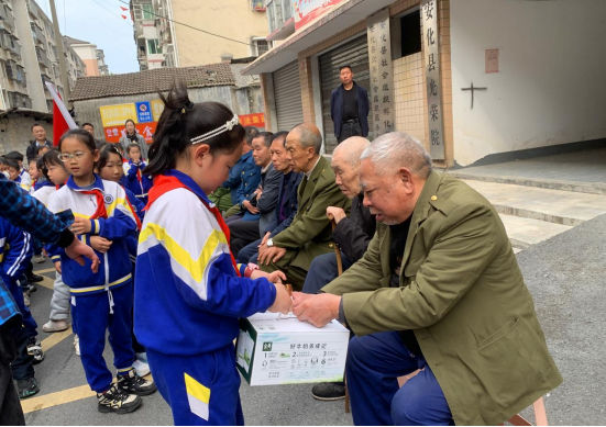 迎着春日的阳光,孩子们与老人们在院子里围在一起,认真地聆听着他们讲述艰苦年代里的革命故事,一同重温曾经峥嵘的战争岁月,深刻感受老一辈革命家深厚的爱国情怀和无私的奉献精神,让红色教育直抵孩子们心底。 看到这么多稚嫩的脸庞和孩子们清澈而充满敬意的眼神,老人们甚是开心和欣慰,表示感受到了社会的浓浓关爱,青少年就是祖国的未来和希望,一定要好好学习,当好接班人。