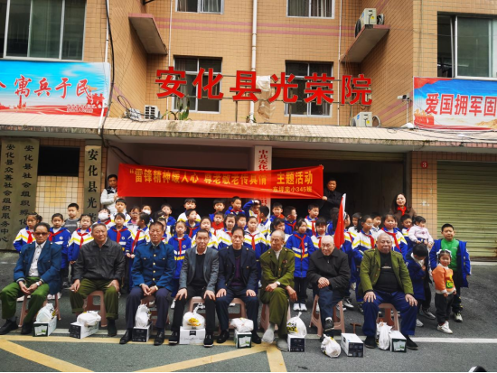 本网讯 三月春风拂人暖,少年追“锋”正当时。为弘扬雷锋精神,传承敬老、爱老的优良传统美德,3月22日,东坪镇完小345班开展“雷锋精神暖人心,尊老敬老传真情”主题活动,学生带上牛奶、面包等慰问品前往安化县光荣院看望11位休养老军人,为他们送上温暖和关爱。