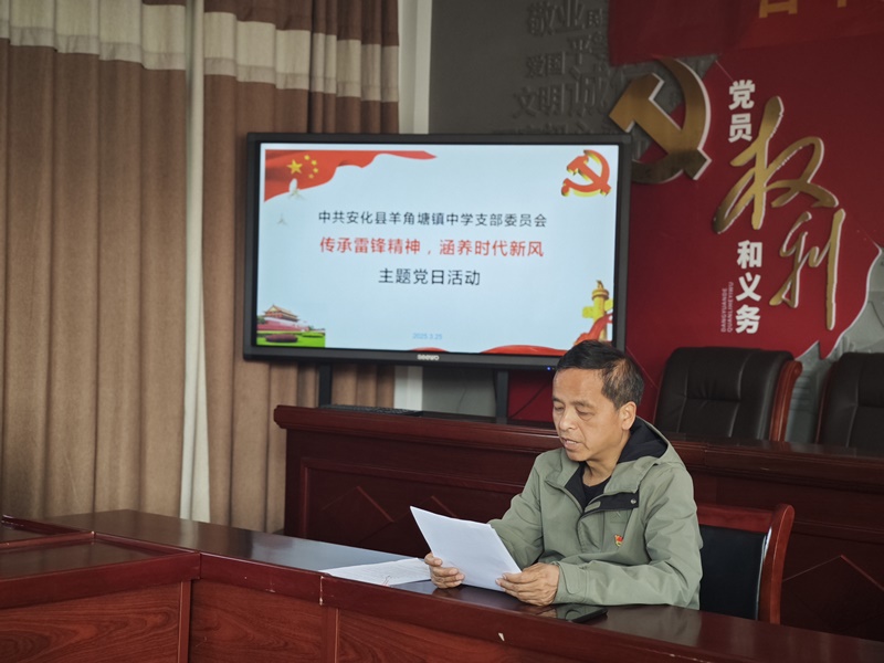 本网讯 3月25日,羊角塘镇中学党支部组织全体党员和入党积极分子在党建活动室开展了以“传承雷锋精神,涵养时代新风”为主题的3月份党日活动,为学校教学发展注入了红色动力。 活动期间,党支部书记谢新洪率先垂范,积极组织党员教师们观看党员教育片,深入学习习近平总书记关于绿色发展、民营经济发展等一系列重要指示精神。党员们全神贯注观看《第一视点:沿着绿色发展之路坚定不移走下去》,深刻领会生态文明建设的重大意义,对未来教育工作中如何渗透绿色发展理念有了新的思考;紧接着聚焦《习近平:民营经济发展前景广阔大有可为民营企业和民营企业家大显身手正当其时》,领悟民营经济在国家发展大局中的关键角色,拓宽教育服务社会经济发展视野。 谢新洪书记还着重带领大家学习《习近平总书记关于党的建设的重要思想概论》,从理论高度强化党员教师对党建工作的认识,为学校党组织建设筑牢思想根基,确保教育事业发展沿着正确政治方向稳步前行。李习仪同志组织研读了习近平总书记重要文章《经济工作必须统筹好几对重要关系》,引导党员教师立足教育岗位,理解经济社会全局与教育事业局部的关联,以更宏观视角规划教育教学工作。 微党课环节中李超荣、张雅琪同志化身讲师,结合身边事例与教育工作实际,从雷锋的奉献精神谈到新时代教师如何在日常点滴中关爱学生、服务校园,激励党员教师以雷锋为榜样,在教育一线发光发热,用行动诠释新时代雷锋精神内涵。 初审初校:李颖慧 复审复校:杨建伟 终审终校:夏赞斌 ![]() ![]()