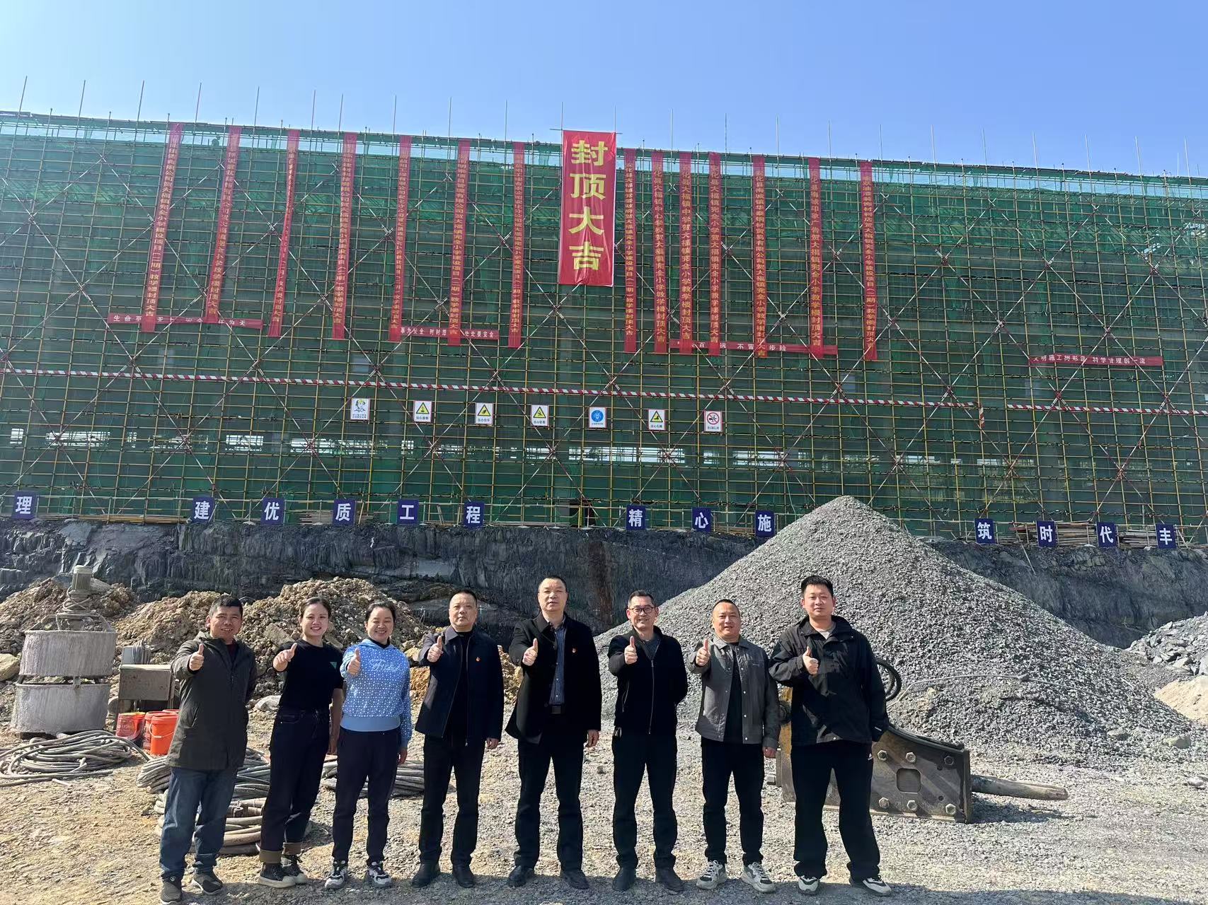 本网讯 3月21日,大福镇完小新建的教学楼主楼顺利封顶,学校在项目现场举行封顶仪式。大福镇中心学校校长肖叔平、镇中学校长刘立青、镇完小校长林颖、大福完小全体行政、基建中心相关负责人及施工单位责任人共计50余位嘉宾出席封顶仪式,共同见证这一重要时刻。 该栋新建教学楼建筑总面积约为3582平方米,采用现代化四层装配式结构设计,内部规划合理。自2024年11月20日正式开工以来,经过四个多月紧张有序地施工,在各级有关部门的大力支持及监理、设计等单位的密切配合下,精心组织、科学管理,严把安全关、质量关、进度关,顺利实现主体结构封顶。接下来施工方将进行内外部装修及配套设施安装等后续工程,争取早日投入使用,为该校师生提供更加宽敞舒适的学习和生活空间。 据悉,新建教学楼是大福镇完小扩建项目之一,该项目还涵盖塑胶跑道、篮球场等,是为振兴大福教育,提升学校办学条件的一项民生工程。 教学楼的顺利封顶,标志着项目建设取得了阶段性的胜利。该校全体师生决心以此为契机,加强学习,开拓创新,不断提高教师队伍的素质,把大福完小办成一所"县内一流"学校,为大福基础教育进一步发展做出新的贡献 初审初校:姚俊 复审复校:黄红 终审终校:林颖