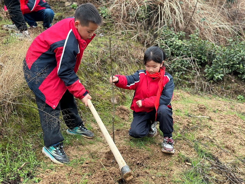 本网讯 3月12日 ,乐安镇完小开展以“携手护绿,共建生态家园”为主题,践行“绿水青山就是金山银山”为理念的植树节活动。 下午1点,参与活动的学生们和老师们准时在操场集合。出发前,老师向同学们详细讲解了植树的要点和注意事项,特别强调了安全问题,确保活动安全有序地进行。 到达目的地后,现场瞬间变得热闹非凡。同学们热情高涨,纷纷行动起来。有地挥着锄头认真挖坑,有的小心翼翼地扶正树苗,有地提着水桶来回浇水,分工明确,配合默契。在老师们的耐心指导下,一颗颗充满生机的树苗被稳稳地种进土里。 种完树后,同学们为每棵小树挂上精心制作的“认养牌”,承载着同学们对绿色未来的期许。 植树活动结束后,大家主动清理现场的工具和垃圾,保持环境整洁。回到学校后,同学们还通过写作文、绘画等方式,分享自己在活动中的感悟和收获。大家纷纷表示,这次活动让他们深刻体会到了劳动的乐趣和保护环境的重要性。 初审初校:陈婷婷 复审复校:李斌 终审终校:胡斐