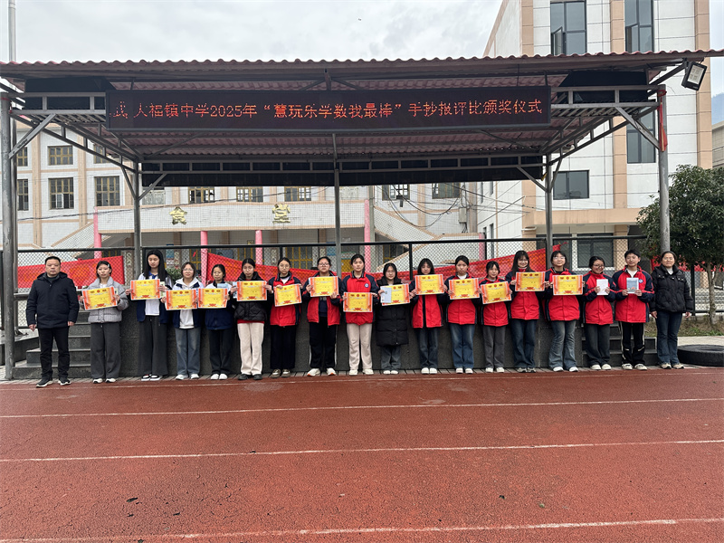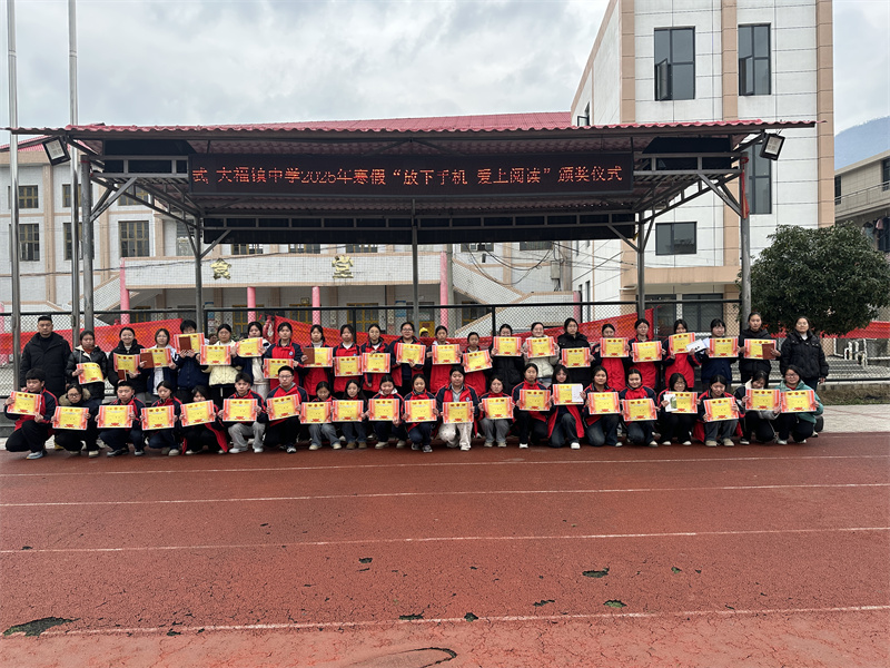 本网讯 3月11日,大福镇中学在操场举行2025年寒假“放下手机 爱上阅读”活动总结大会暨“慧玩乐学数我最棒”手抄报颁奖仪式。