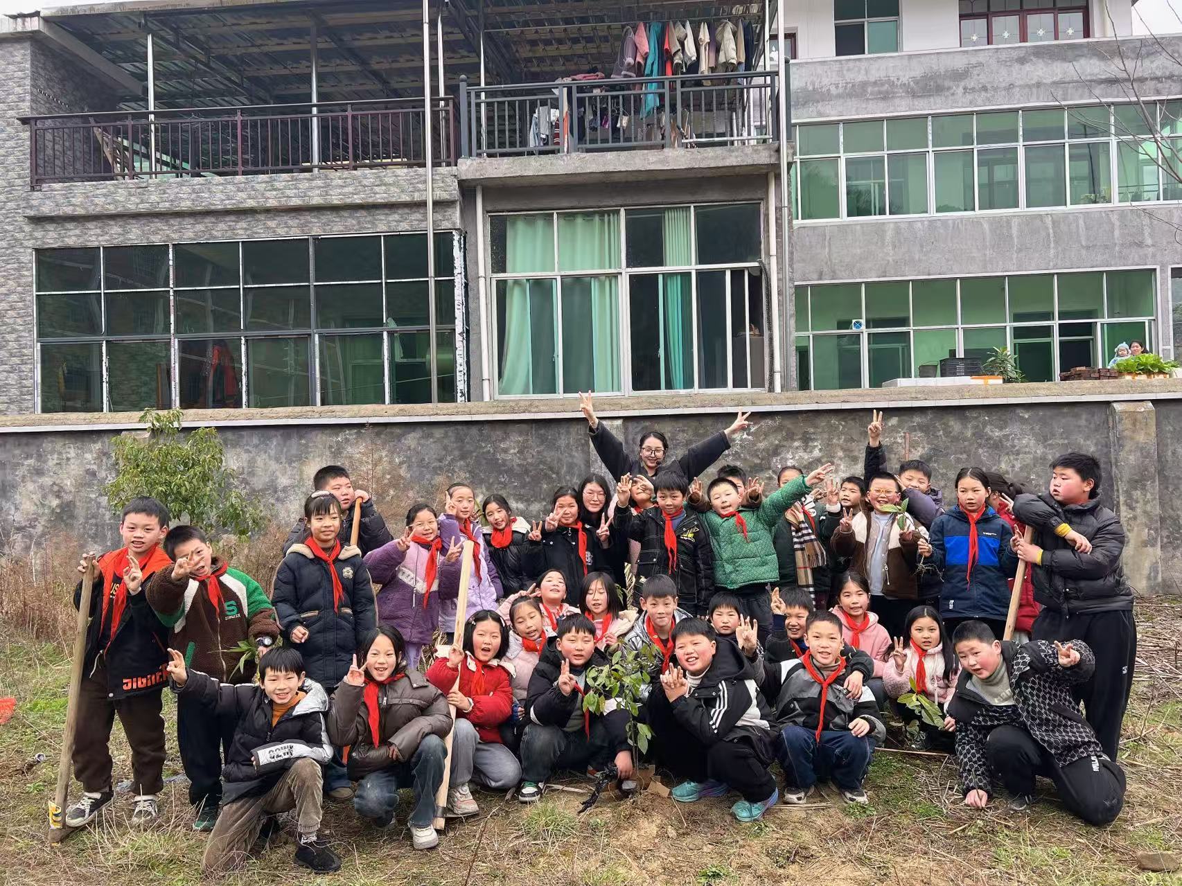 本网讯 3月11日,高明铺完小在教学楼后面的空地举行了植树实践活动。该校全体行政人员、任课教师、四、五、六年级的学生参与了此次活动。 伴随运动员进行曲,该校全校师生在操场集合。植树之前,该校校长彭少贤强调学生要注意安全,避免受伤。植树时,师生共同合作,教师挥着锄头挖好土坑,学生小心翼翼地把树苗放进土坑,男生用铁锹给土坑培土,女生两人一组提水给树苗浇灌。汗水从两颊流下,模糊了双眼,随手一擦,继续干;双手酸软,满脸因用力涨得通红,也咬紧牙关接着挖......通过全校师生的努力,原本的荒地上已是一片希望的绿色。 据悉,该校一直很注重学生的全面发展,不仅开齐开足了劳动教育课程,还要求学生每周周末帮助家长做力所能及的家务或劳动。