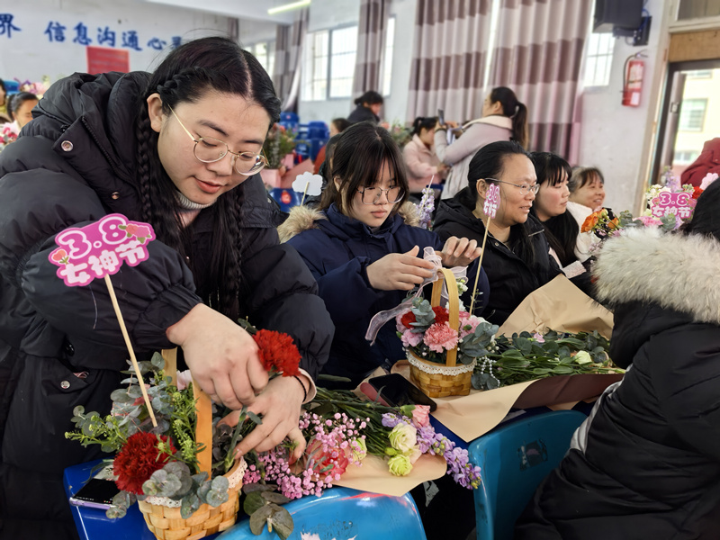 本网讯 3月6日,清塘铺镇第一完小通过插花艺术创作,营造轻松温馨的节日氛围,传递对女性教育工作者的关怀与敬意。 活动开始,清塘铺镇第一完小党支部书记刘小燕发表热情洋溢的致辞,向全体女性员工致以节日的问候和美好的祝愿。此次活动还特别邀请了花艺师邹婷女士现场讲解插花基础知识。在老师的指导下,教师们迫不及待地开始动手制作花束,巧手翻飞间,普通的花枝渐次舒展成错落有致的艺术品,有的清丽婉约如江南水墨,有的热烈奔放似春日交响,每个作品都成为个性与审美的独特注脚。 活动尾声所有作品集中展示,各小组按人数比例推选出最优作品,行政与工会委员评出“花艺诗人奖”“创意之星奖”“花间哲学家奖”“色彩魔法师奖”“妙手生花奖”“野生艺术家奖”“最佳造型奖”。大家脸上洋溢着满满的幸福感和成就感,纷纷与自己的作品拍照留影,呈现出一幅“人面桃花相映红”的春景图。 初审初校:李昱颖 复审复校:李国顺 终审终校:刘小燕