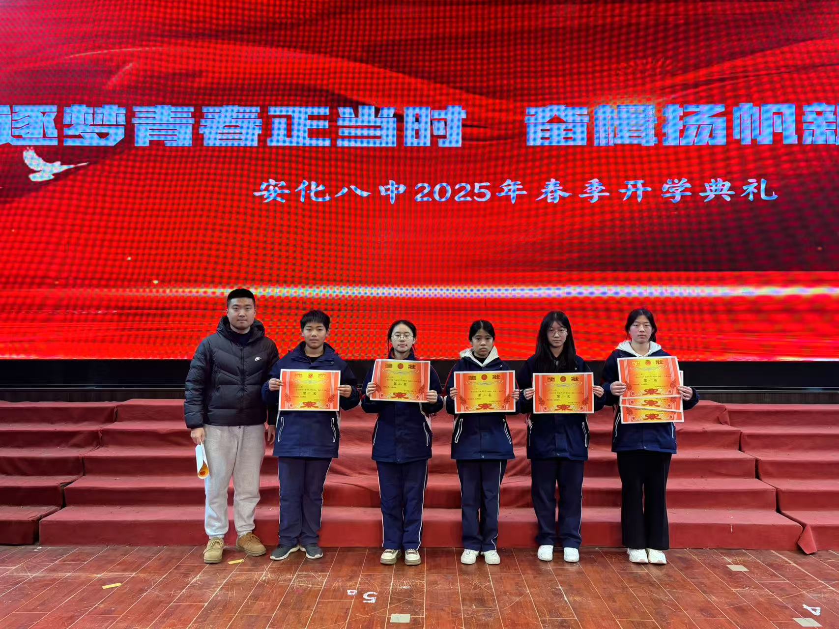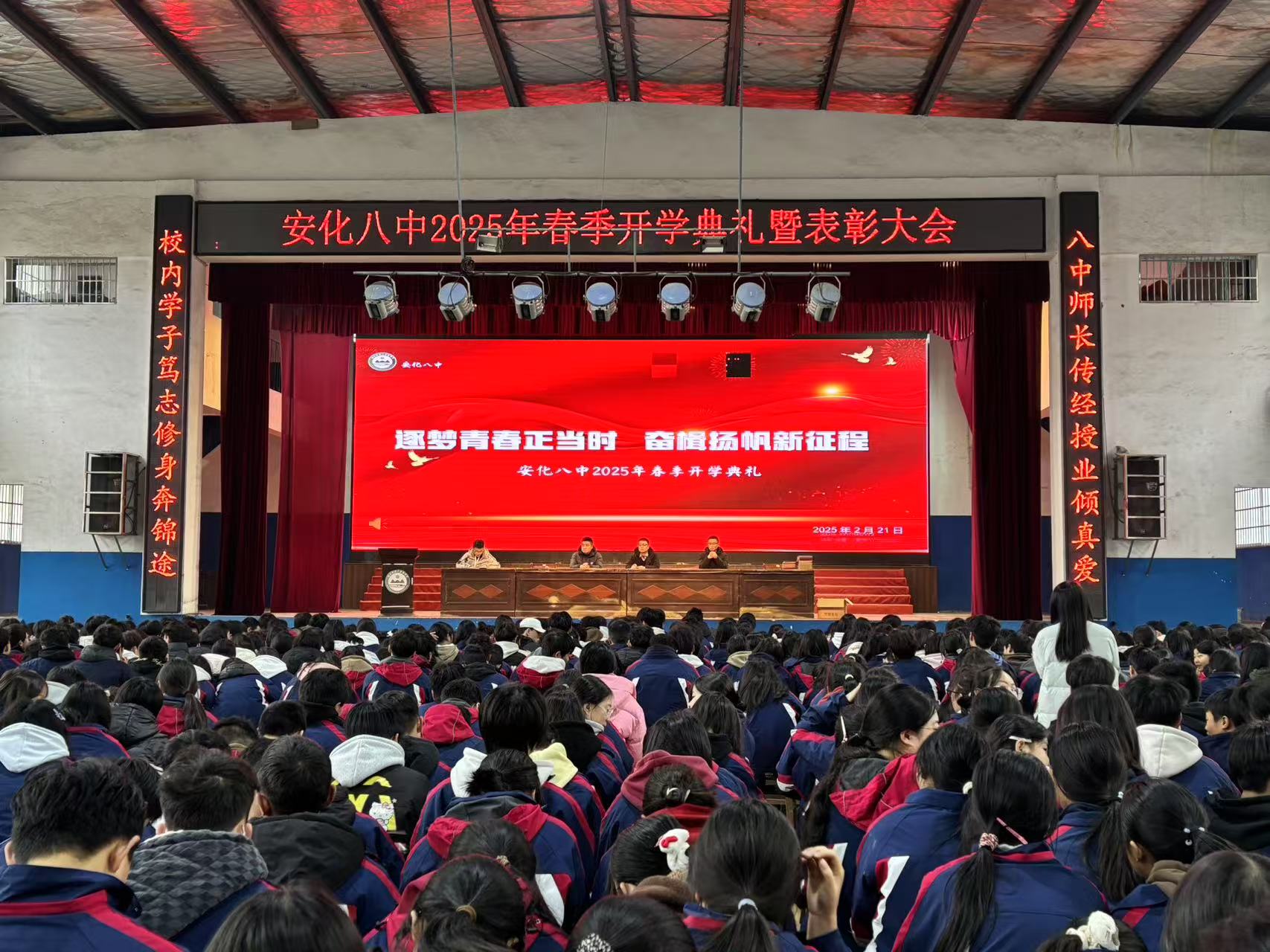 本网讯 2月21日,安化八中全体师生齐聚学校礼堂,举行2025年上学期开学典礼。典礼在庄严的国歌声中拉开帷幕,全体师生肃立,齐声高唱国歌,表达对祖国的崇高敬意。