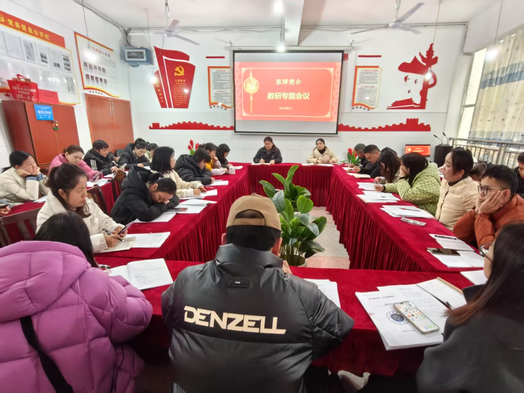 本网讯 2月19日,东坪镇完小2025年上学期教研工作专题会议在该校党建室召开,全体行政和教研组长共同参加。 会上,教科室主任陈加革总结上学期教研组工作情况,宣布优秀教研组名单,并作《深耕教研启新貌,助力东风结硕果》的专题报告。教务主任蒋丽光进行了书香校园建设工作安排,强调了教师教学常规工作。分管教学工作的副校长林中爽强调了本学期教研工作重点,并进行了专题讲座《以研促教,点亮课堂》。 该校校长陈秀丽对全体成员给予了充分肯定,提出了新的要求和期望:各教研组要稳打稳扎,做实常规工作;要凝聚合力,加强团队建设;要开拓进取,在工作中创新突破。 初审出校:陈加革 复审复校:谌学智 终审终校:陈秀丽