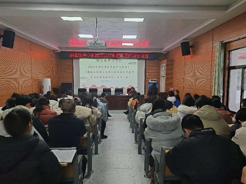 本网讯 2月11日,烟溪镇中心学校面向辖区学校全体教师开展省首届教改项目《镇域内构建小学研训共同体促进教师专业发展实践研究》阶段性成果汇报与推广。 项目负责人刘娟从教师专业发展成效凸显、研训共同体模式创新、区域教育生态优化、制度机制长效保障四个维度进行了阶段性成果汇报。 烟溪镇中心学校校长胡毅指出,自《镇域内构建小学研训共同体促进教师专业发展实践研究》项目实施以来,镇域小学教师专业自主发展意识增强,教育教学质量得到整体提升,教育生态焕发新活力,项目组提炼的“主题引领-校际联动-分层研训”共同体研训模式可复制,可推广。希望镇域全体教师携手,共研共进,书写镇域教育新篇章!