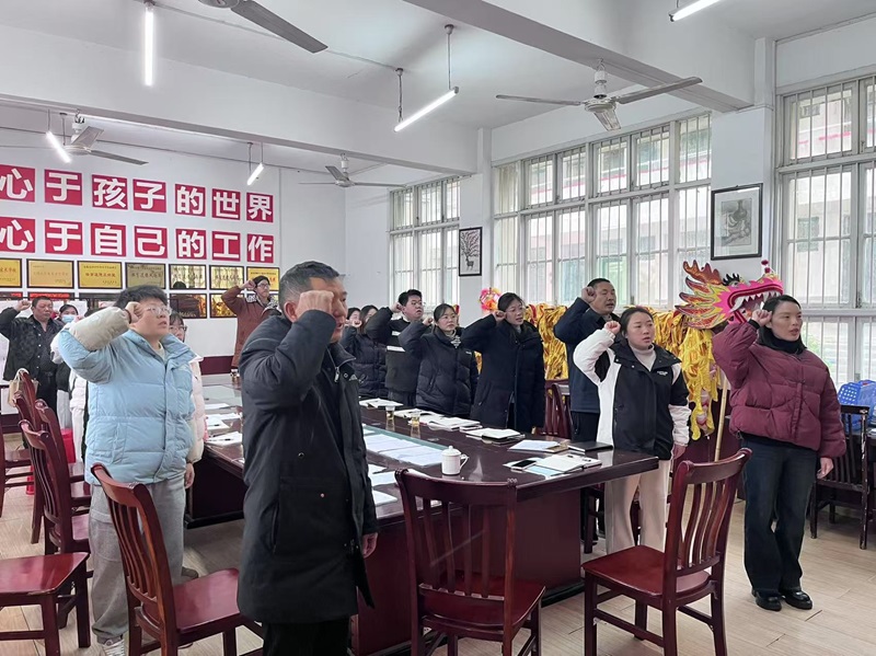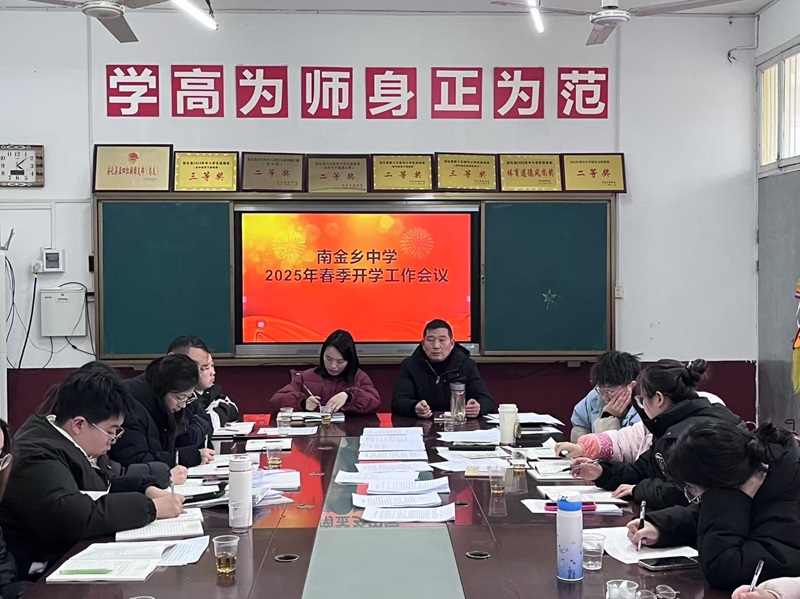本网讯 2月11日,南金乡中学组织召开2025年春季开学工作会议,南金乡中心学校工会主席夏干华参会,会议由办公室主任林志武主持。 会上,学校各行政对本学期开学工作进行了全面且深入的部署,对新学期的工作重点与发展方向进行了详细阐述。校长夏晶向全体教师致以新春的诚挚问候,带领全体教师重温教师誓词,强化了教师献身教育的思想意识,提高了教师从业的神圣感和使命感。提出以“师德、安全、质量、教研、品牌”五个重点来开展本学期工作思路。夏干华充分肯定了教师们在上学期教育教学工作中所取得的成绩,勉励教师要有教学目标和人生规划,代表中心学校做老师们最坚强的后盾! 会后,全体教师签订了《师德师风责任书》,纷纷表示将以更加饱满的热情和严谨的态度投入到新学期的工作中,为培养更多优秀人才而努力奋斗。 初审初校:林志武 复审复校:夏 晶 终审终校:谌少准
