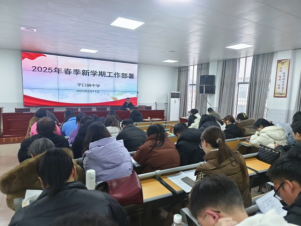 本网讯 2月11日上午,平口镇中学召开了2025年春季师德师风培训暨开学工作动员大会。会议由办公室主任夏明兰主持,全体教职工参会,共绘新学期发展蓝图。 会议以“师德师风第一课”拉开序幕,学校工会主席杨珍娥从学校榜样出发,宣读2024年下期师德标兵、名优班主任、优秀教师名单。紧接着学校师德干部夏明兰以《三代同辉铸师魂,匠心传承育新人》为题作师德师风专题报告,结合《新时代中小学教师职业行为规范十项准则》,引导教师坚守育人初心,提升师德修养。 学校教务处对新学期的教育教学、师训工作进行了安排部署,他强调了体育课程的重要性,要求实施要有针对性,做到一课一落实。新学期,学校课间活动时间将延长至15分钟,以保证学生得到充分的休息与锻炼,促进学生身心健康全面发展。 随后,学校针对校园安全、开学工作流程及教学常规展开细致安排,强调安全是学校工作的生命线,教学常规是教学质量的保障,要求全体教师严格落实。 最后,学校校长伍文才作新学期讲话。他以《灵蛇启新程,杏坛铸辉煌》为题,指出新学年围绕一个中心、突出一个重点、抓牢两条主线、抓实三项工作为工作新思路,锚定方向,共同实现校园平安、办学行为规范、教学质量不滑坡的总体目标。