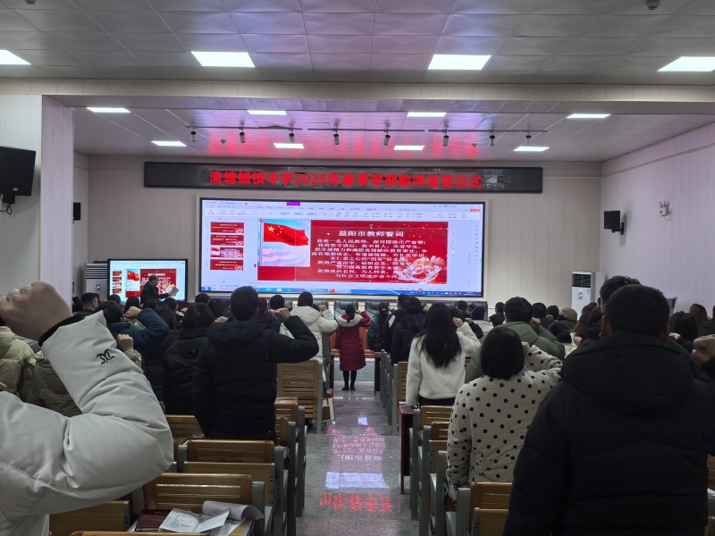 本网讯 2月11日,清塘铺镇中学召开2025年春季教师理论学习班暨开学工作会议。全体教职员工参加,中心学校党总支副书记邓朝阳应邀参加。会议由工会主席周伟宏同志主持。 校长刘丽莉作了题为《统一思想 规范办学 争创佳绩》的学校工作报告。报告分两部分,第一部分从坚持党建引领,加强党纪党风建设;筑牢安全管理,确保师生平安;落实五育并举,提升教学质量;突出服务意识,后勤保障有力;存在的问题等五个方面全面回顾了2024年学校所取得的各项成绩,对全体教职员工付出的艰辛努力和取得的工作成效给予了充分肯定。第二部分,刘丽莉谈了对新学期的工作设想和部署:坚持党建引领抓队伍建设;坚持综合治理抓校园平安;坚持改革创新抓教师业务;坚持立德树人抓质量提升。她强调,开局就是决战,全体教职员工务必围绕安全、质量、项目、课改、财务、队伍、教育信息化等方面定下的工作目标,统一思想、规范办学,坚决落实立德树人根本任务,努力完善学生教育管理模式,加强师德师风、教师行为准则教育,突出教学常规精细化管理,多措并举狠抓毕业班工作,实现2025届中考辉煌的新梦想。随后,办公室主任张剑文组织进行教师宣誓,政教处主任刘轩尚、教导处主任陈艳梅就分管工作作了具体安排与强调。 会议还表彰了2024年下学期优秀班主任、教学质量先进个人。 初审初校:张剑文 复审复校:刘精快 终审终校:刘丽莉