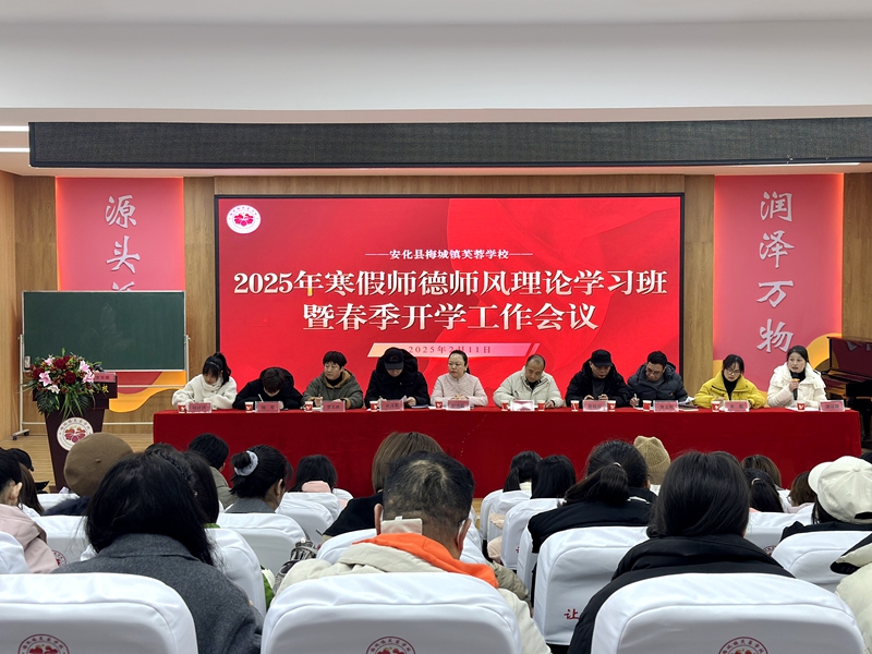 本网讯 2月11日,梅城镇芙蓉学校召开2025年师德师风理论学习班暨春季开学工作部署会议,梅城镇中心学校联点领导刘志灵、蒋瑞珲莅临指导,会议由政务处主任谭媛媛主持。 会上,党建、工会负责人蒋志和作题为《贯彻全国教育会议精神凝聚共识高质量推进意识形态工作》师德师风专题辅导报告,围绕师德内涵、职业规范及如何利用新时代新科技AI展开讲解。德育处、教导处、政教处、教科室、总务室负责人分别就新学期德育工作、教育教学工作、安全工作、教研教改、后勤保障等方面进行了详细部署与安排,明确了新学期工作重点和目标。 学校党支部书记、校长彭海鹏作题为《锚定发展目标 聚力攻坚突破 铸造芙蓉品牌》开学工作报告,从“夯实思想领域,做智慧的芙蓉人”“推进人本管理,做快乐的芙蓉人”等六个方面明确学校新学期发展目标,号召全体教职工以高度的责任感和使命感,扎实做好新学期各项工作。 梅城镇中心学校党总支副书记刘志灵以Deepseek人工智能软件为切入点,就“怎样的老师才不会被AI 代替”这一话题对教师提出三点期望,希望全体教师做有爱心的老师,办有温度的教育;做有思想和教育情怀的老师和管理者;做有创新精神的老师和管理者。 初审初校:谭媛媛 复审复校:俞泽军 终审终校:彭海鹏
