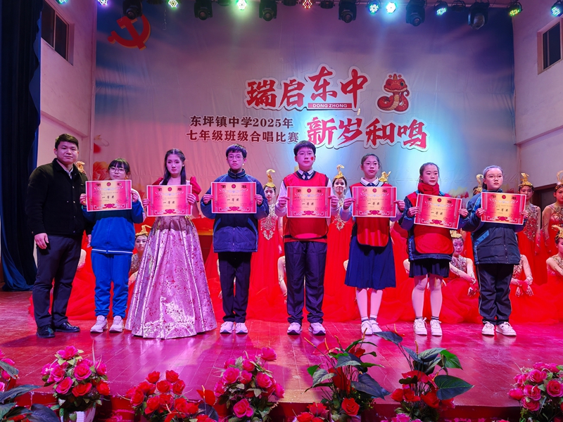 本网讯 12月31日晚,东坪镇中学校园里歌声激昂,一场以“瑞启东中 新岁和鸣”为主题的七年级元旦合唱比赛在学校大礼堂隆重举行。七年级15个班级800名同学积极参与了此次合唱比赛。 党支部书记、校长王飞的激情致辞拉开了元旦合唱比赛的序幕。各班同学以饱满的精神状态演唱了《东中校歌》和自选歌曲。舞台上,同学们着装整齐,自信大方。同学们用嘹亮的歌声、精准的音调、明快的节奏、精彩的表现,赢得了观众的阵阵掌声与赞叹,展现出东中学子团结协作、乐观进取的精神风貌。唱出了对祖国、对学校的深情,对美好生活的向往。 经过激烈的角逐,2404、2407、2408、2401、2410、2413、2414七个班级获得本次比赛的一等奖,其余班级获得二等奖。2404班王悦航、2408班夏威夷、2407班刘雨泽等七位同学获得“优秀指挥员”奖。 初审初校:王子慕 复审复校:邓峥 终审终校:刘卫安