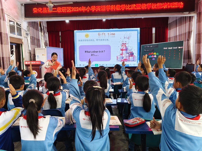 本网讯 近日,安化县第二教研区2024年小学英语学科教学竞赛暨教学技能培训活动在清塘铺镇第一完小举行。 活动开始后,四位教师依次进行了教学展示,内容涉及听、说、读、写等多方面。每位教师的教学内容紧扣小学英语课标,围绕“情境创设、语言运用和学生参与”三大教学目标展开。为了更好地体现教学效果,课堂上教师们充分运用了多媒体、互动式教学工具以及丰富的教学资源,设计了生动有趣的教学活动,最大限度地激发了学生们的学习兴趣和参与热情。现场观摩的教师们积极参与,气氛活跃。通过这次教学竞赛和培训活动,与会教师共同探讨了小学英语教学的新方法和新思路,进一步提升了教学水平。 经过激烈角逐,来自清塘铺镇的阙响彦老师和梅城镇的熊美菊老师胜出,将代表第二教研区参加安化县2024年小学英语课堂教学比武。 初审初校:李国顺 复审复校:赵 丹 终审终校:刘小燕