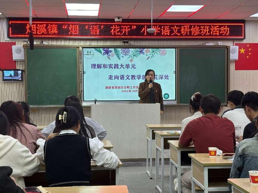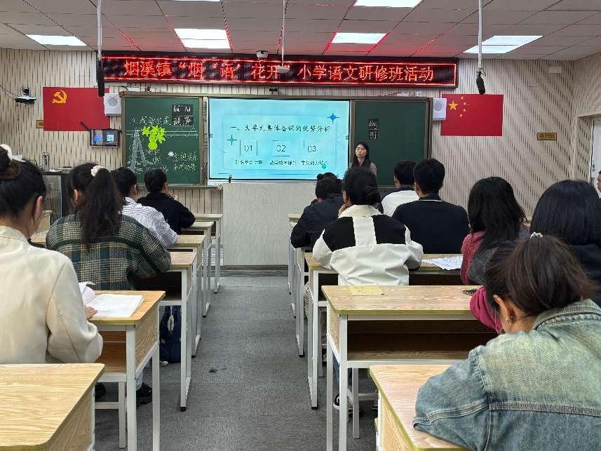 本网讯 11月15日,烟溪镇中心学校“烟‘语’花开”小学语文研修班第四次活动在烟溪镇完小云录播教室举行,活动由中心学校教导主任刘小军主持,共有小学语文教师、初中及幼儿园教研组长、省教改项目镇域研训共同体成员共50余人参加。 作为2023年湖南省教改项目《镇域内构建小学研训共同体促进教师专业发展策略研究》的实践,本次活动以“核心素养导向下大单元教学的组织与实施”为主题,通过课例研讨、心得分享、专题讲座等形式,突破大单元教学的“是何”“为何”及“如何”。 “烟‘语’花开”二年级研修小组组长、烟溪镇完小肖翠琳老师执教观摩课《我要的是葫芦》。肖老师以黑猫警长破“谁破坏了我的葫芦”案为情境,紧贴文本设置两条线索,整合《语文园地五》的字词句运用及《我爱阅读》中的《刻舟求剑》,向与会人员展示了“烟‘语’花开”研修班对大单元教学以“一个单元为单位”进行的初步探索。 烟溪镇完小刘俊连老师以《以学促教,且学且思——长沙“和美课堂”培训汇报》为题,从“树立文脉意识、落实古诗文积累与拓展”及“预测单元教学六策略”进行分享,带领与会人员明确大单元教学“关照一个学段全册教材”进行系统构建。 烟溪镇完小教导主任张慧娟以《基于大单元教学下集体备课流程与实施》为题,详细介绍了大单元教学的背景、意义及实施步骤,并现场演示了在线集体备课的操作流程。她强调,集体备课是提升教学质量的重要途径,教师们要积极参与,共同研讨,共同提升。同时,她还就如何组建高效的在线集体备课团队给出了具体建议,为教师们提供了宝贵的指导和帮助。 下午,湖南省周丽珍名师工作室成员、安化县东坪镇城南完小副校长刘静为参培教师带来了《理解和实践大单元,走向语文教学的百花深处》的专题讲座。刘静以其深厚的理论功底和丰富的实践经验,深入浅出地阐述了大单元教学的核心理念、实施路径及成效评估。她指出,大单元教学要注重整体性、连贯性和实践性,让学生在真实情境中学习语言、运用语言、发展语言。 活动中,烟溪镇中心学校为“烟‘语’花开”研训班研修小组组长、师傅、指导老师颁发了聘书,勉励其在小学语文研修路上继续追寻光,散发光。 初审初校:刘益行 复审复校:刘开颜 终审终校:胡 毅