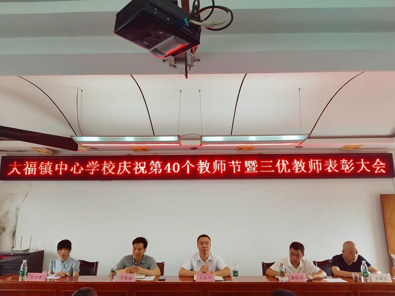 本网讯 9月7日,大福镇中心学校举行庆祝第40个教师节暨三优教师表彰大会,中心学校机关人员、各中小学校校(园)长以及受表彰对象参加会议,会议由中心学校副校长宁党初主持。 会议伊始,中心学校副校长罗献兵宣读表彰通报,表彰“优秀班主任”“优秀教师”“优秀教育工作者”共32人,与会领导依次为获奖者颁发荣誉证书,并合影留念。 随后,“优秀教师”黄婷、“优秀班主任”吴娜、“优秀教育工作者”黄剑作为典型代表依次发言,他们以自己的教学经历为例,分享了在教育教学、管理等方面的宝贵经验,分享了作为教师的责任与使命,以及对教育事业的热爱与执着。 会议最后,中心学校校长肖叔平致词,一方面向全镇辛勤耕耘的园丁们,献上最温馨的节日问候;另一方面回顾总结了全镇各校过去取得的成绩,分享了各校教学能手的典型事例,并寄予了新学期的殷切期望。 初审初校:龚婷 复审复校:肖超龙 终审终校:李最