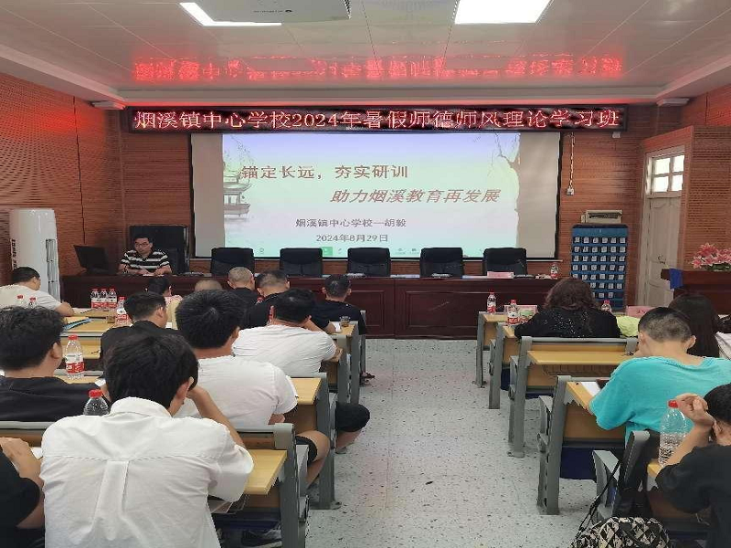 本网讯 8月29日,烟溪镇中心学校在烟溪镇中学召开2024年暑假师德师风理论学习培训会。会议由烟溪镇中心学校办公室主任刘开颜主持。烟溪镇党委委员、人大主席张辉,烟溪镇中心学校总支书记、校长胡毅及全镇教职工等170余人参加。 会上,烟溪镇中心学校副校长丑智萍介绍了新进教师,作了题为《弘扬敬业精神 创优教师队伍》师德师风辅导报告,她结合典型案例深入浅出地阐述了师德师风的重要性,要求全体教师务必做到“德高为师,身正为范”,扎实做好教育这份事业。刘开颜对秋季开学前后的安全工作做了部署与安排。烟溪镇中心学校副校长刘娟作了《用心用情 深耕课堂 助力成长》教育教学质量评析及教学建议报告。 胡毅作了《锚定长远,夯实研训 助力烟溪教育再发展》的开学工作报告。他从抓实党建、领导关怀、活动育人、师资培训、深耕课堂、凝聚人心、夯实安全、精细管理等八个方面对上期工作进行了全面总结,同时对立德树人落实、教师队伍建设、精细管理水平等方面的问题提出了新的思考,要求各校园要扛牢立德树人这面旗帜;抓住教学质量这个生命线;建设好中层干部队伍、教师队伍、教研队伍三支队伍;落实好打造平安校园、优化教育环境、提升职业幸福、引领教师成长四个任务。强调每位教师要坚守教育初心,当好“大先生”;潜心育人,做有温度的教育人。 张辉最后做了总结性发言,他强调全体教师要提高站位,师德师风要常抓不懈;众志成城,教学质量要不断提升;夯实责任,安全管理绝不放松。努力为烟溪教育创新高,立新功!