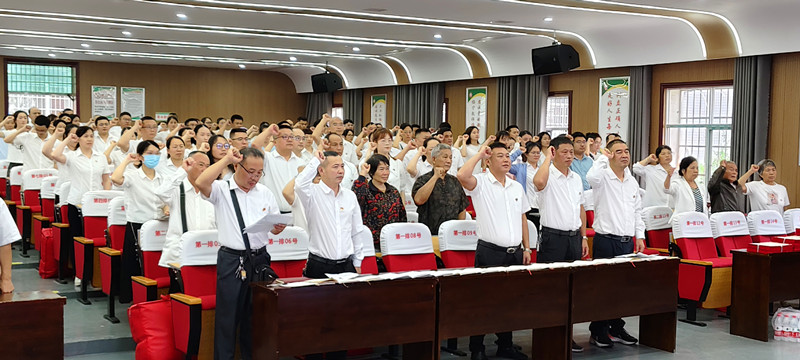 本网讯 6月28日,梅城镇中心学校举行庆七一表彰活动暨先进事迹报告会,表扬梅城教育涌现出的先进个人,全镇教育系统所有在职党员共200人参会。 面对鲜红的党旗,全体党员在党总支副书记刘志灵的带领下,举起右拳,整齐地面向党旗庄严宣誓,铿锵誓言震撼着每一位党员的心,体现了党员同志们更加坚定牢记自己的庄严承诺,在工作中不忘初心,坚守使命,永守入党初心,时刻以党员的标准严格要求自己、时刻以党员的先进性鞭策激励自己,坚定理想信念,以实际行动兑现对党的庄严承诺。 总支委员龙永和向老党员代表颁发“光荣在党50年”纪念章,并代表党总支对获得纪念章的老党员表示热烈的祝贺和崇高的敬意。 总支委员姚建祥宣读表彰通报,与会校领导共同为受表彰优秀党员、党员优秀学习笔记获得者、学习习近平新时代中国特色社会主义思想及习近平总书记关于教育的重要讲话精神心得体会获奖者颁发了荣誉证书。激励党员同志不断检视初心、坚定信念,以实际行动热烈庆祝建党103周年。 优秀党员教师代表结合自己的工作生活实际,用真实生动的案例详实地汇报了自己作为一名党员教师的坚守和奉献。梁子来老师作为班主任尽职尽责、甘于付出、甘于奉献,不仅是学识路上虚心的求知者,还是学生成长途中知心的陪伴者;何叶姣老师讲述自己对教育的执着与热爱,不断修师德、拓学识,赢得领导、同事和学生一致好评;张小叶老师爱岗敬业、温柔可亲,学生心目中最为信任的“园长妈妈”……一个个鲜活的事例,一颗颗对教育事业的无悔丹心,深深感动了在场的每一位党员教师。 初审初校:蒋志球 复审复校:蒋友朋 终审终校:贺 荻